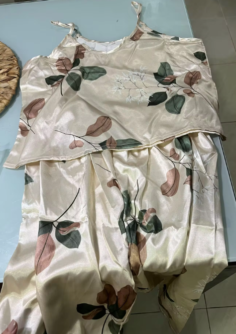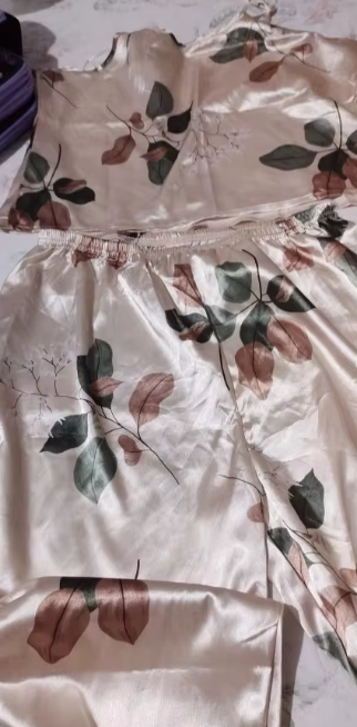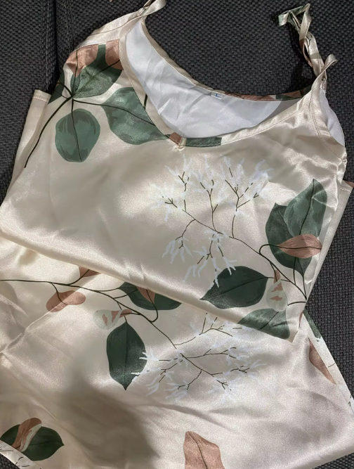 Be the first to review “Casual Leaf Print Satin Cami Top and Elastic Pants Comfortable Sleepwear”
