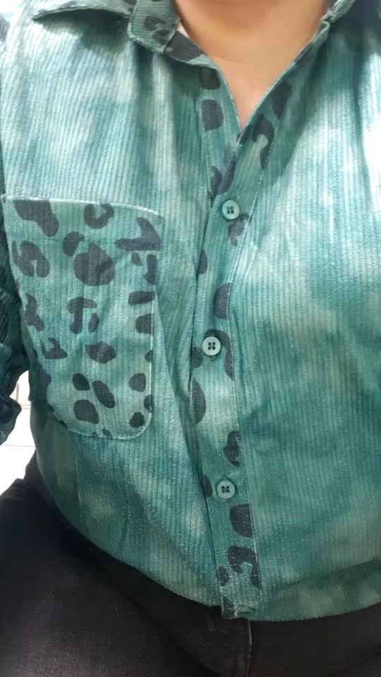 Be the first to review “Casual Leopard Print Ribbed Button Up Lapel Collar Shirt”