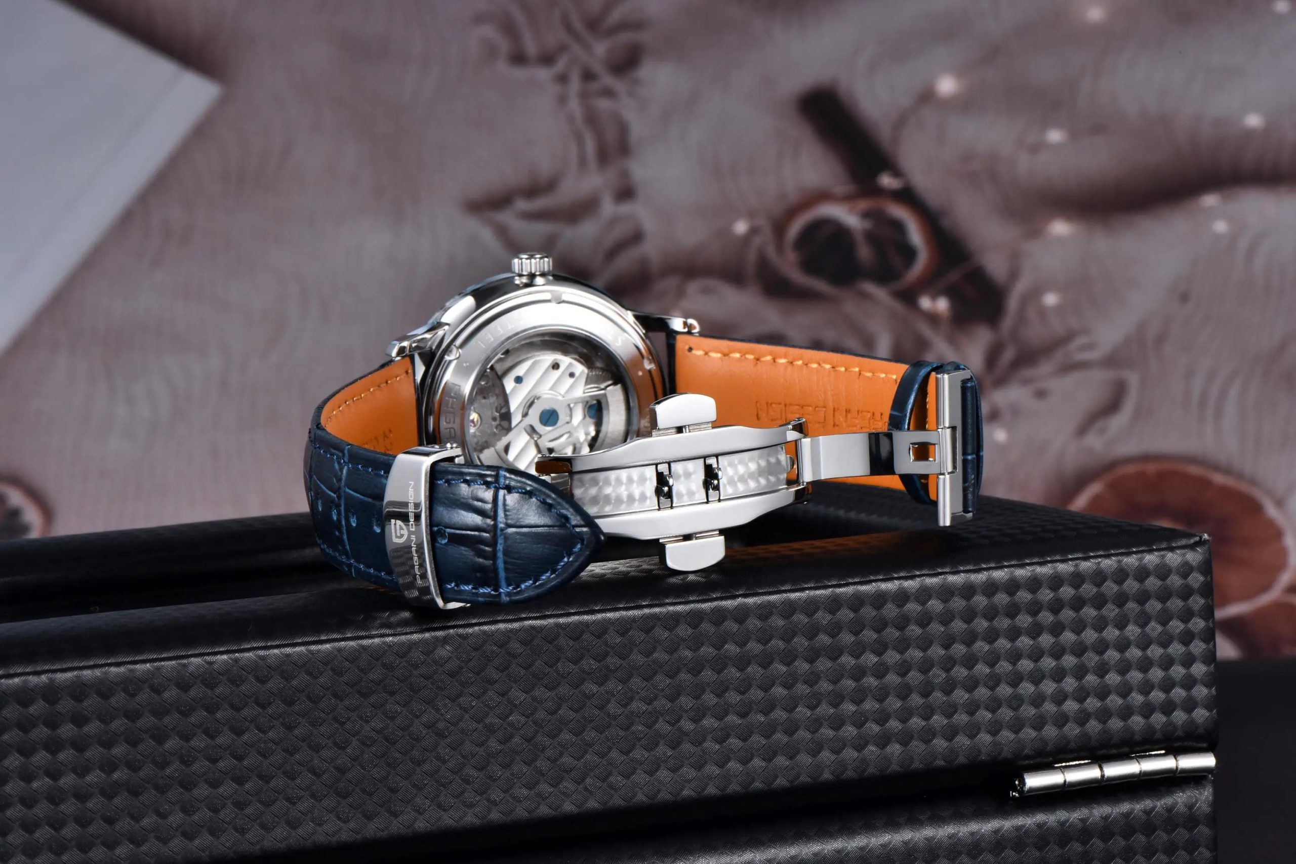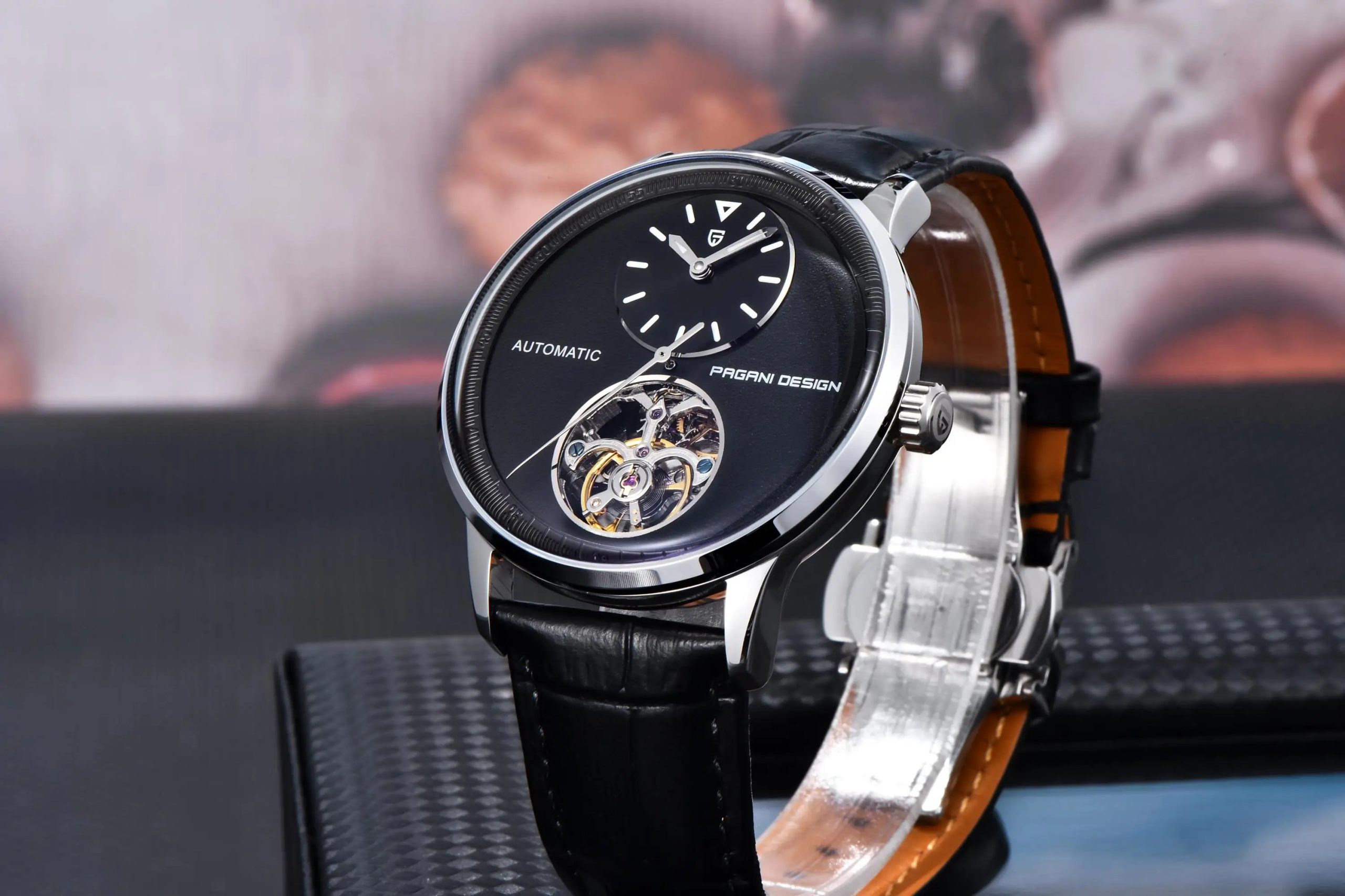 Be the first to review “Casual Mechanical Watch Automatic Movement Tourbillon Stainless Steel 100m Waterproof PU Leather Strap Watch”