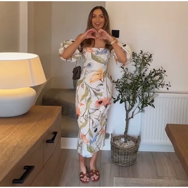 Be the first to review “Casual Off Shoulder Slim Waist Tube Top Long Split Flower Print Midi Dress”