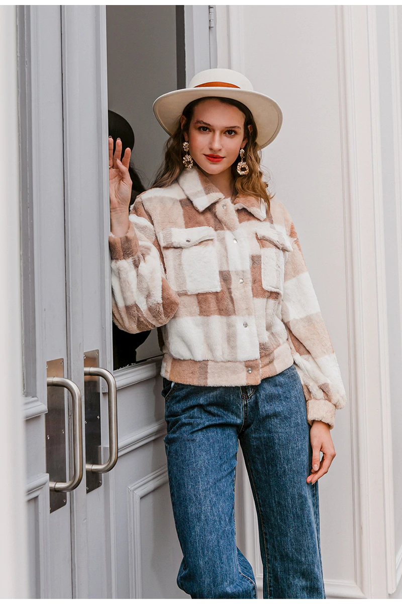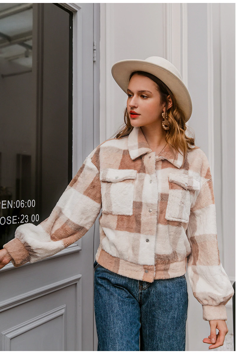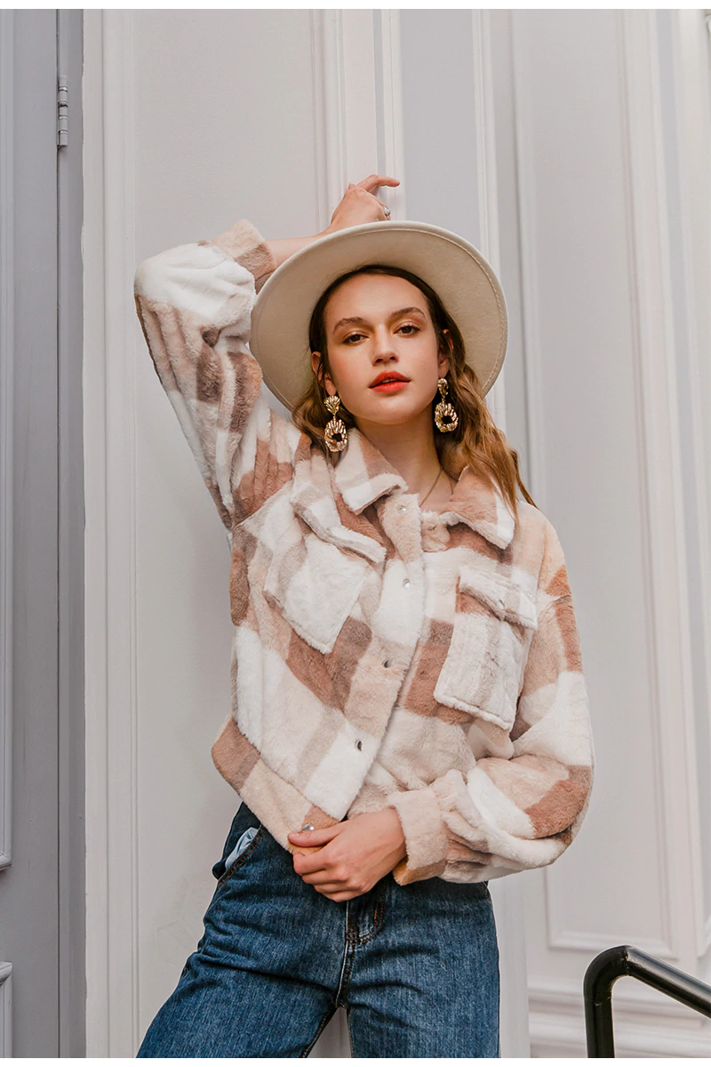 Be the first to review “Casual Plaid Long sleeve lapel fur coat”