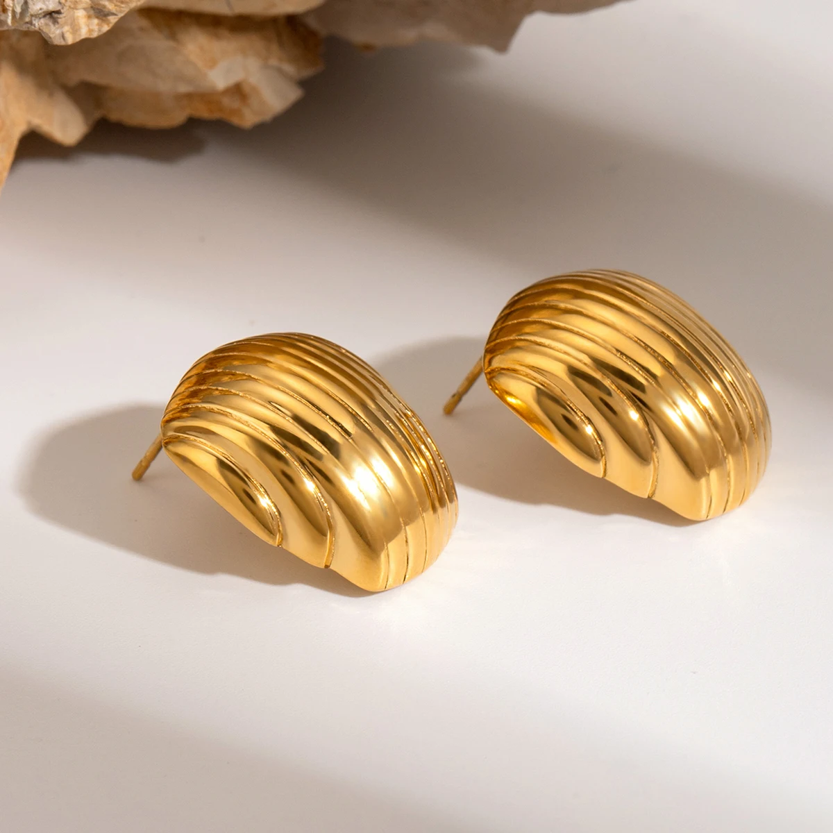 Be the first to review “Casual Plated Texture Stainless Steel Geometric Stripe Metal Stud Earrings”