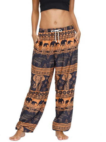 Casual Raised Waist Printed Pants