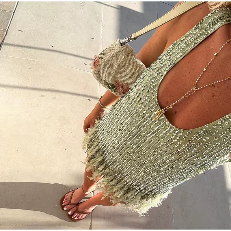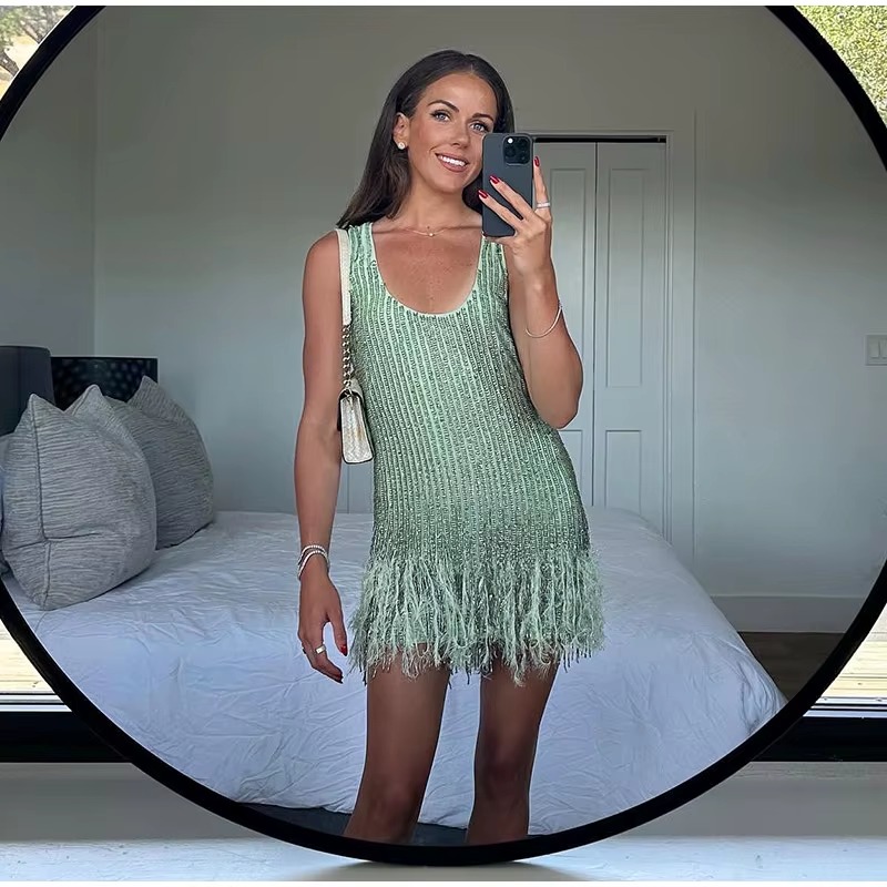 Be the first to review “Casual Sleeveless O-neck Polyester Sequin Tassel Party Mini Dress”