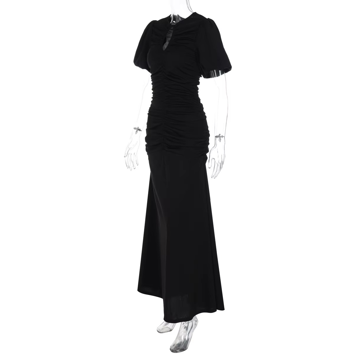 Be the first to review “Casual Solid Hollow Out O Neck Short Sleeve High Waist Temperament Maxi Dress”