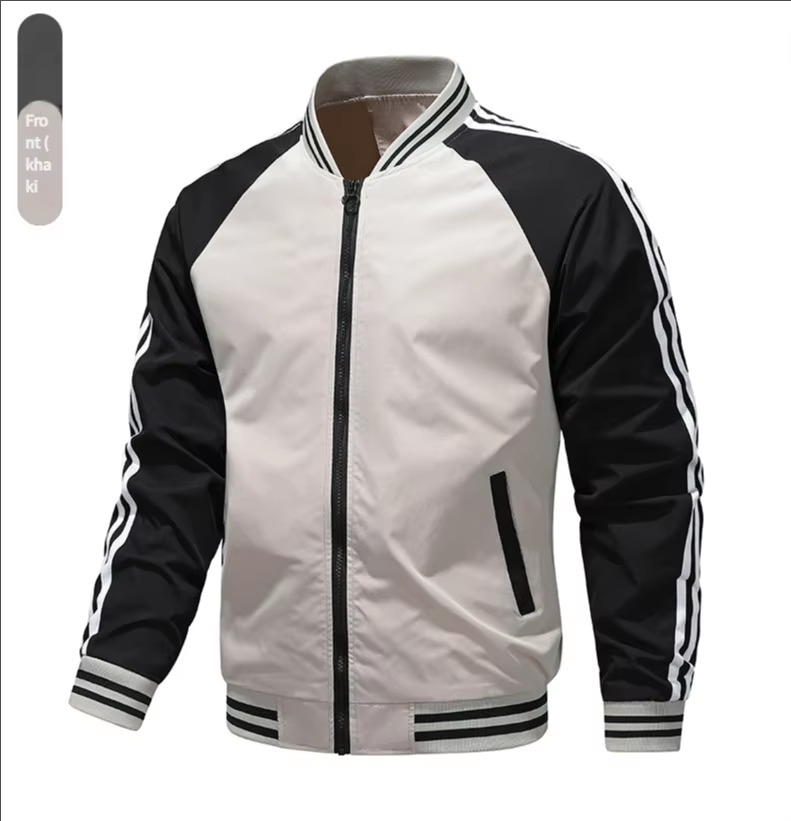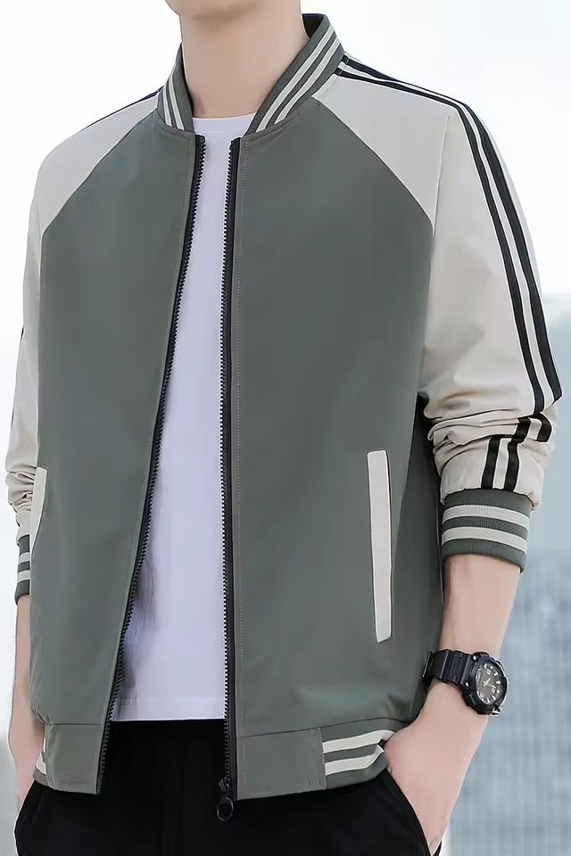 Casual Striped Draped Young Men Baseball Collar Two-bar Jacket