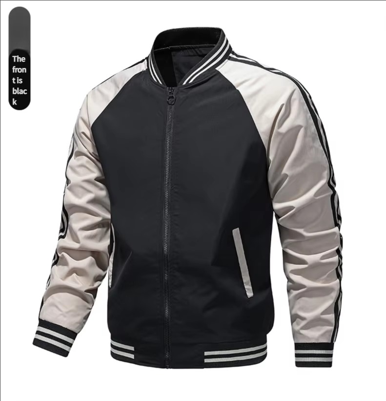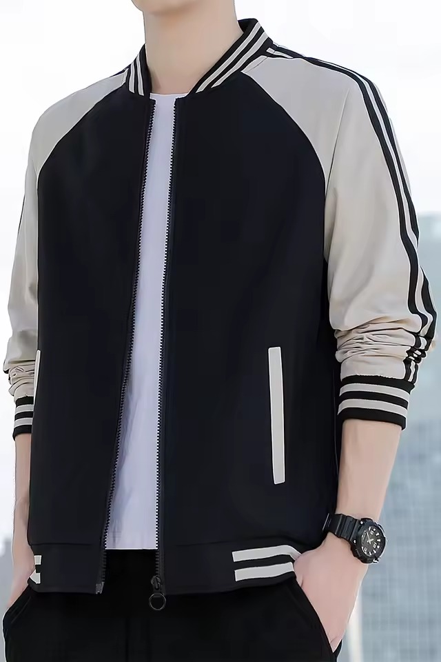 Be the first to review “Casual Striped Draped Young Men Baseball Collar Two-bar Jacket”
