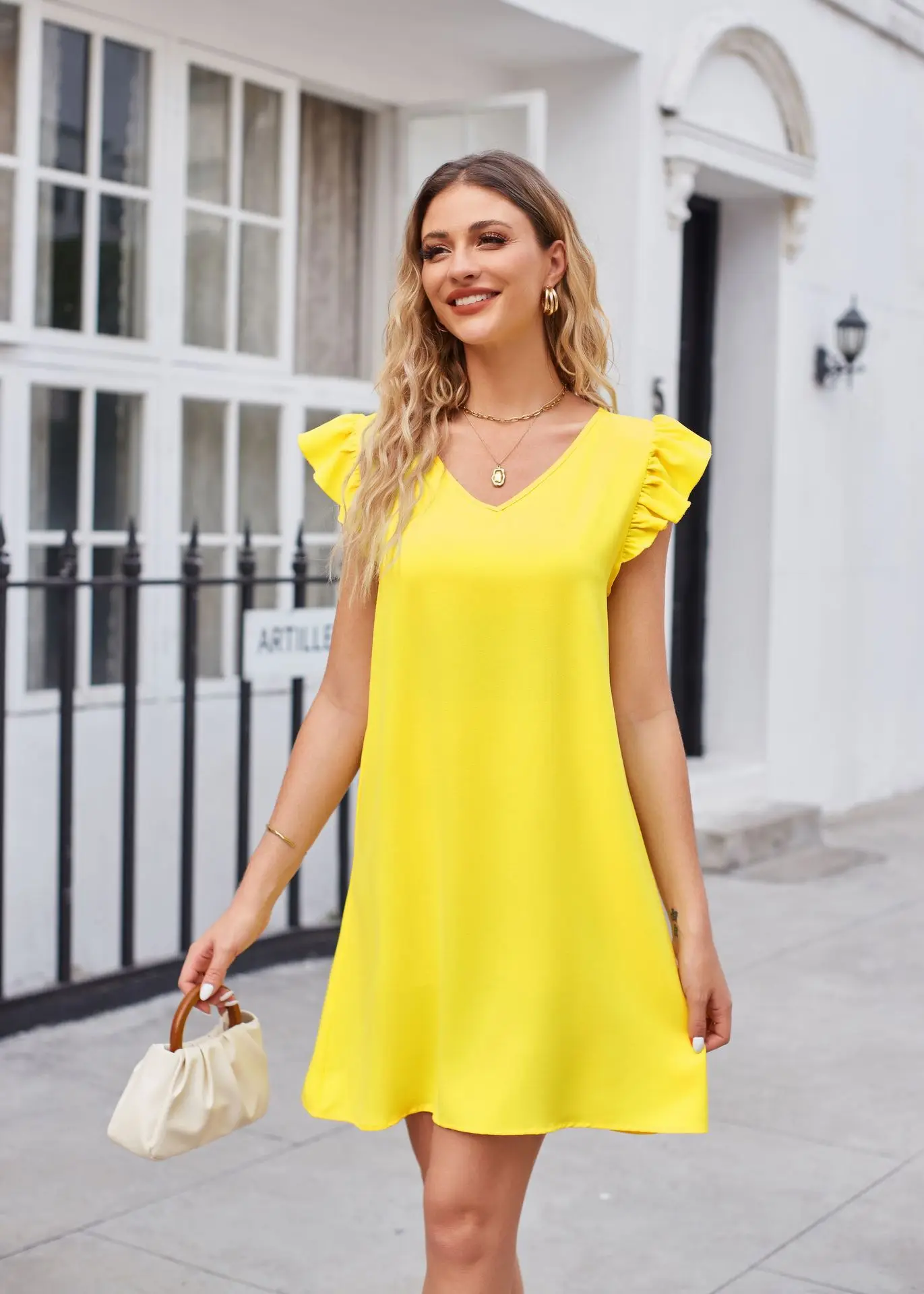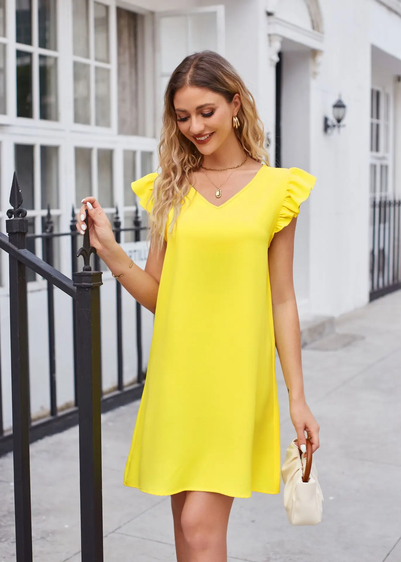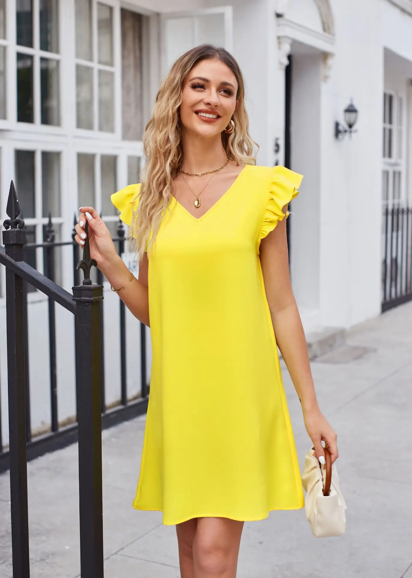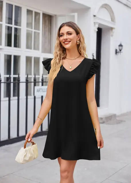 Be the first to review “Casual V-neck Bubble Sleeve Loose Non Stretch Mini Dress”