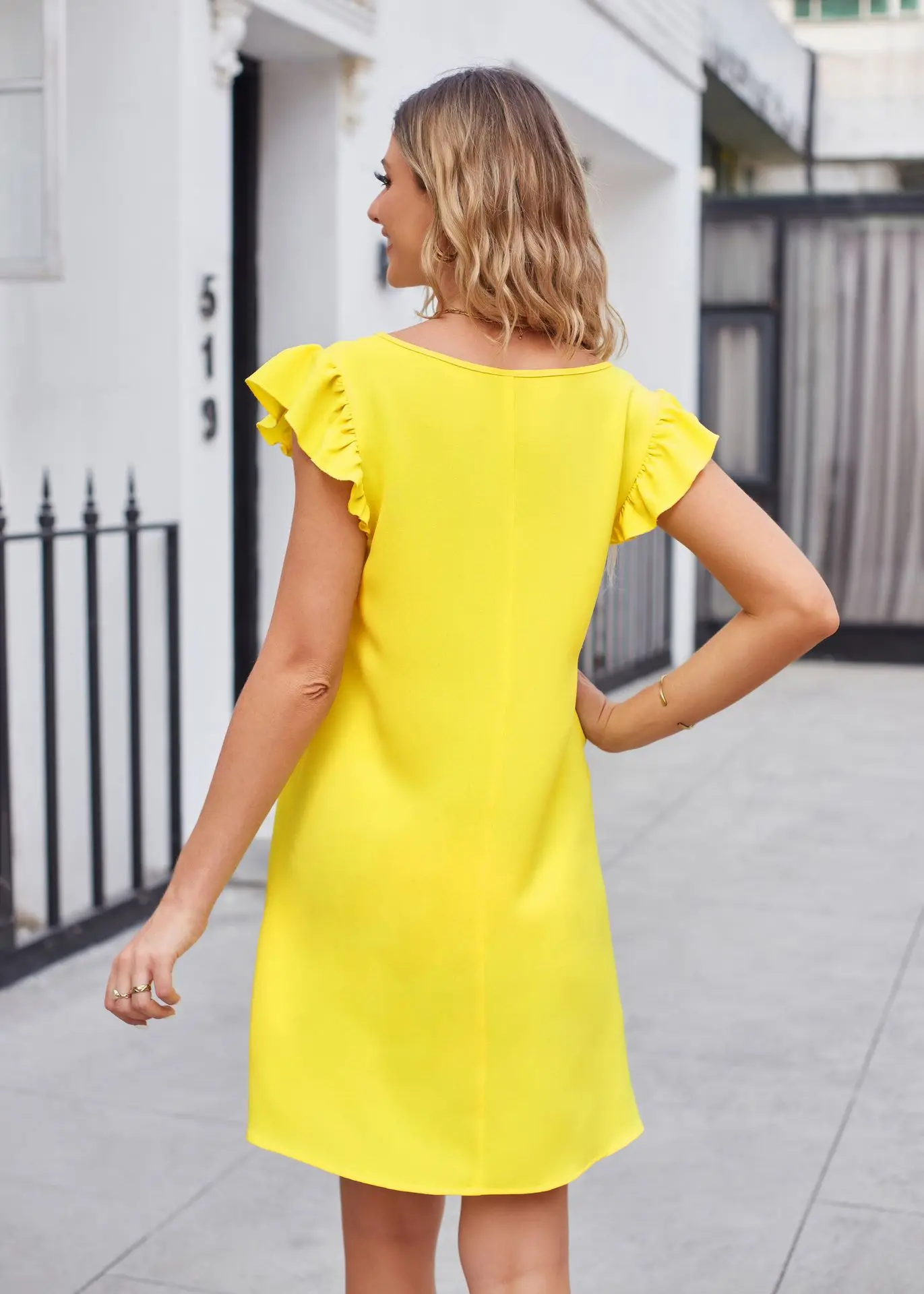 Casual V-neck Bubble Sleeve Loose Non Stretch Mini Dress