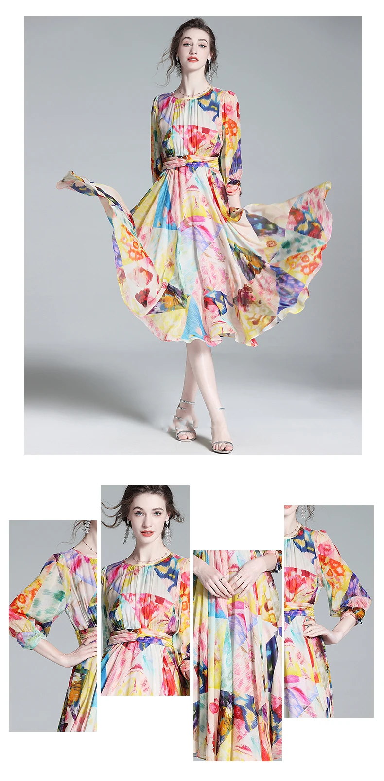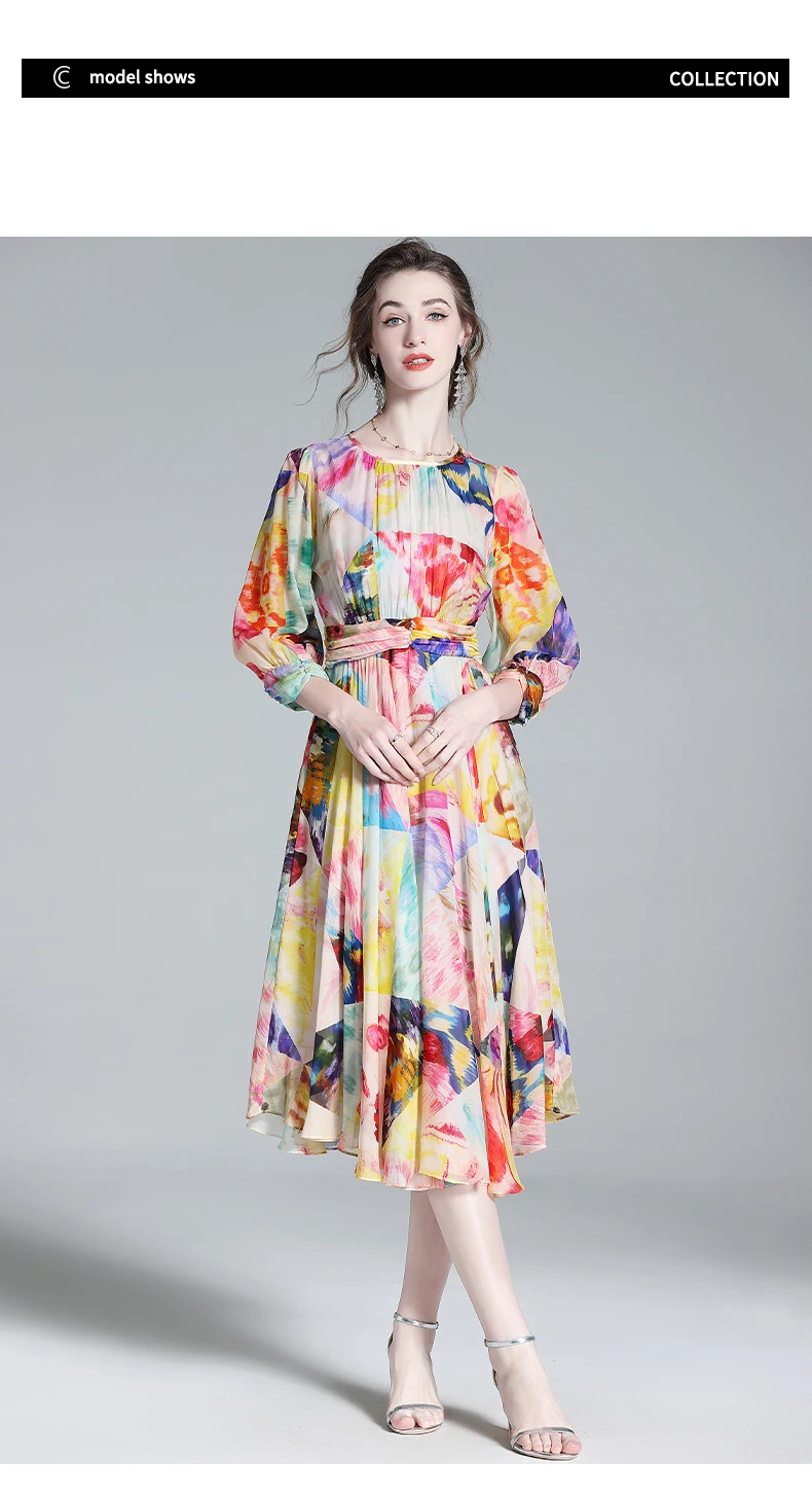 Be the first to review “Chic Printing O-Neck Casual A-line Chiffon Dress Vestidos”