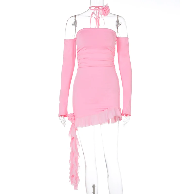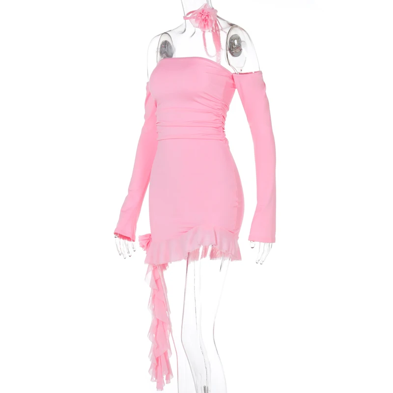 Chic Slash Neck Bodycon Mini Dress with Ruffle Detail Perfect for Parties