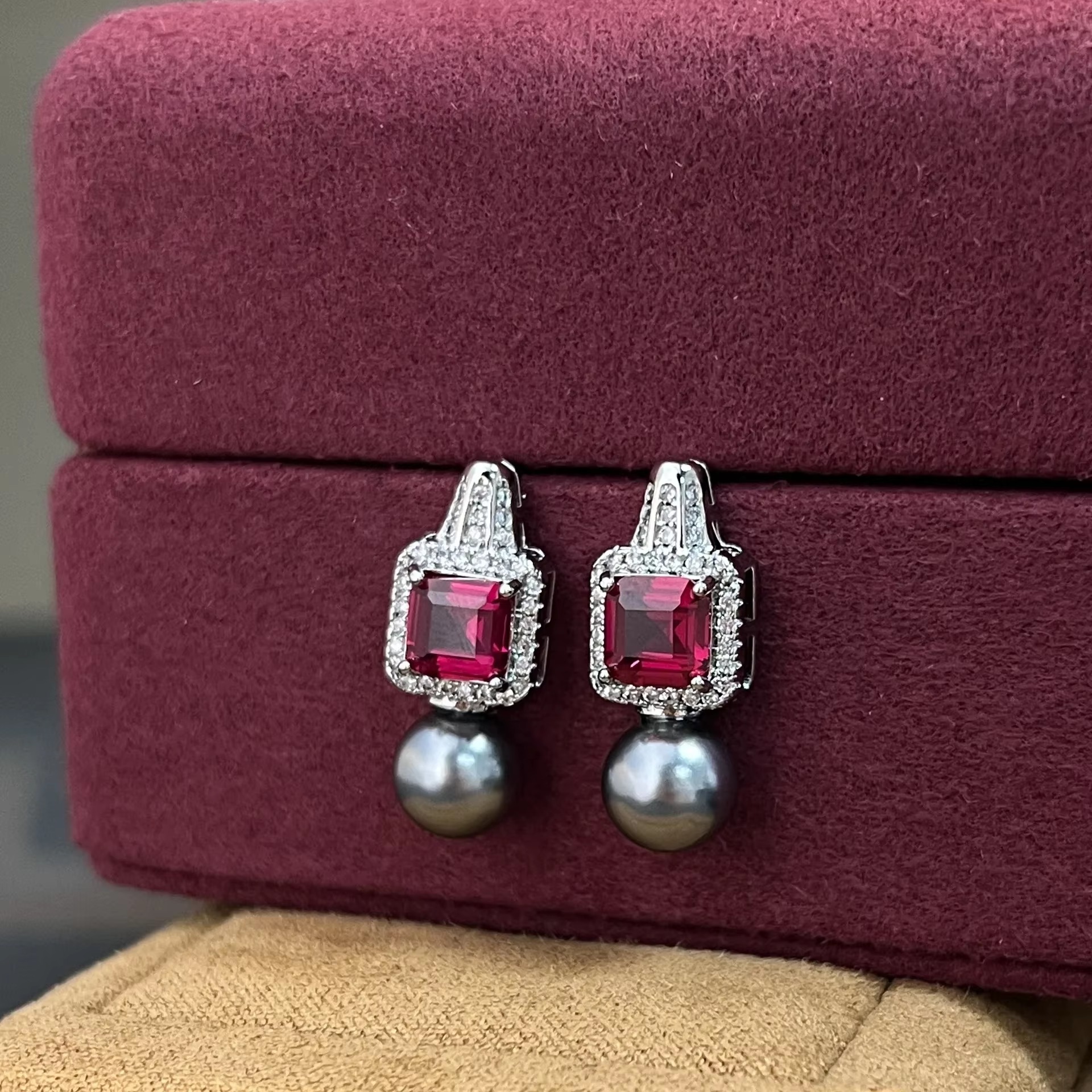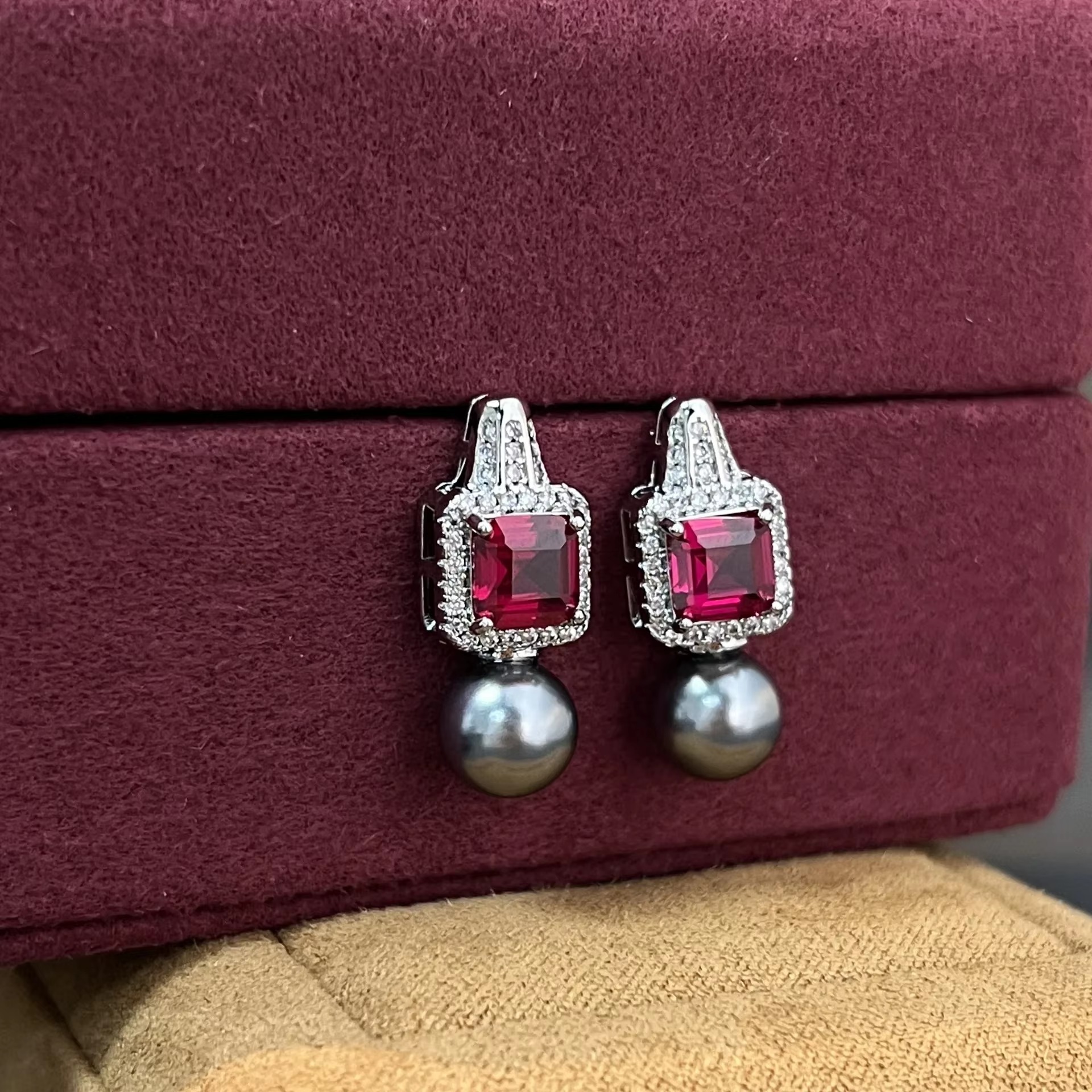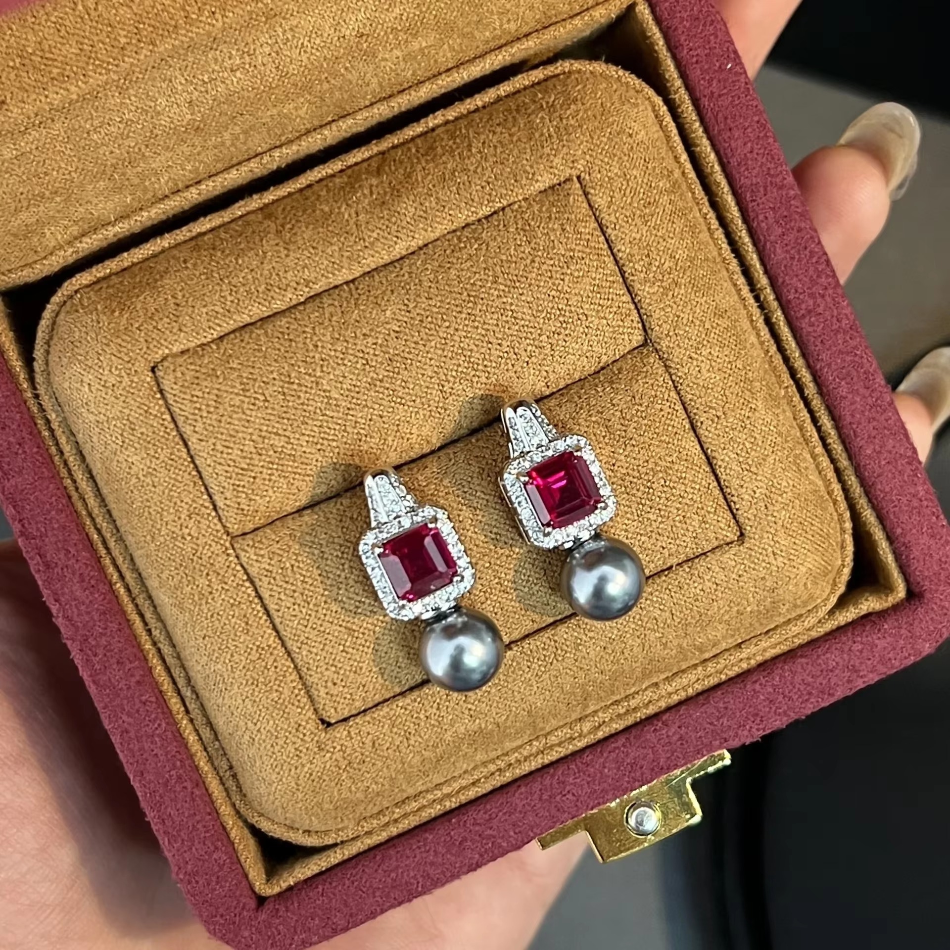 Be the first to review “Classic Square Ruby Retro Pearl Earrings Necklace Wearing Jewelry Sets”