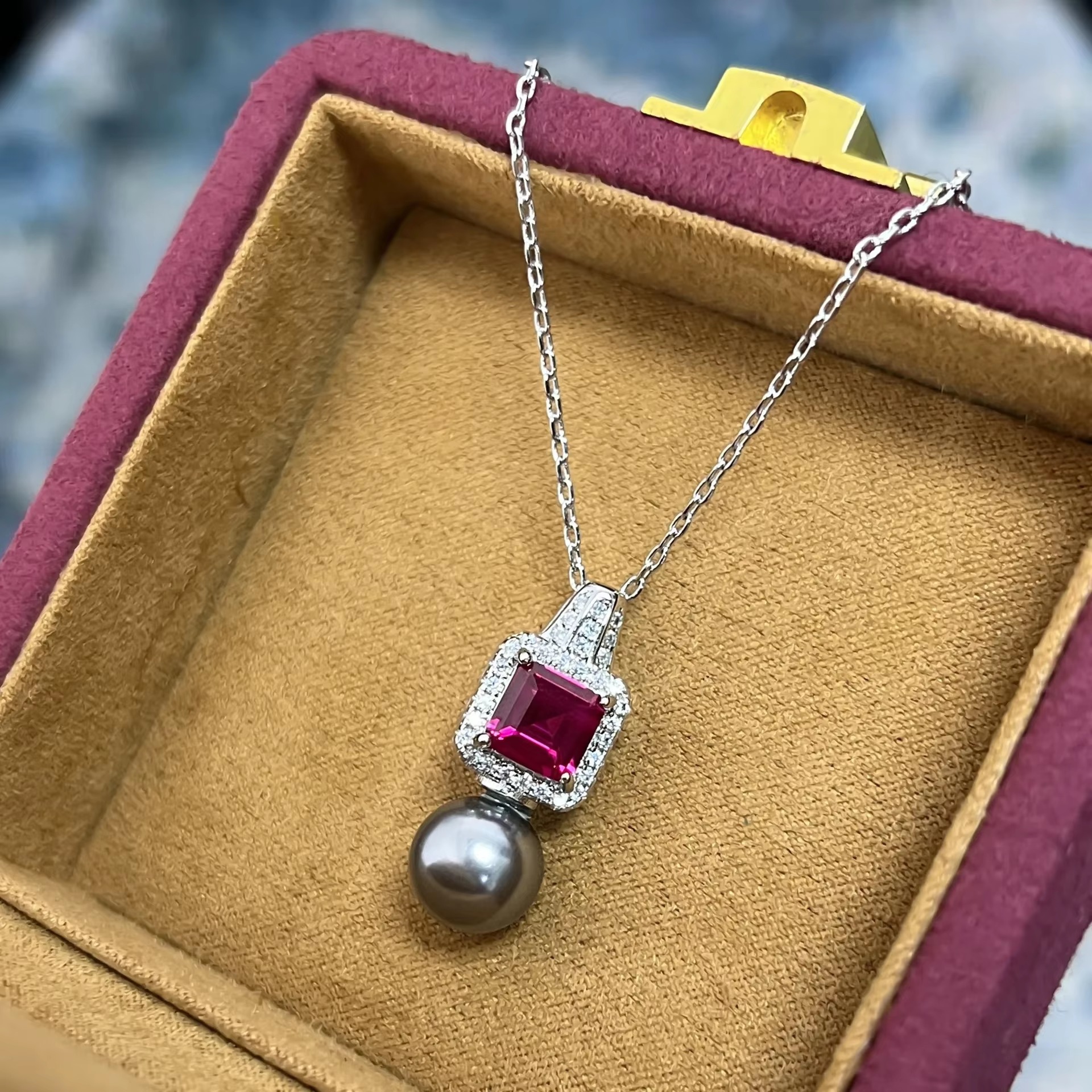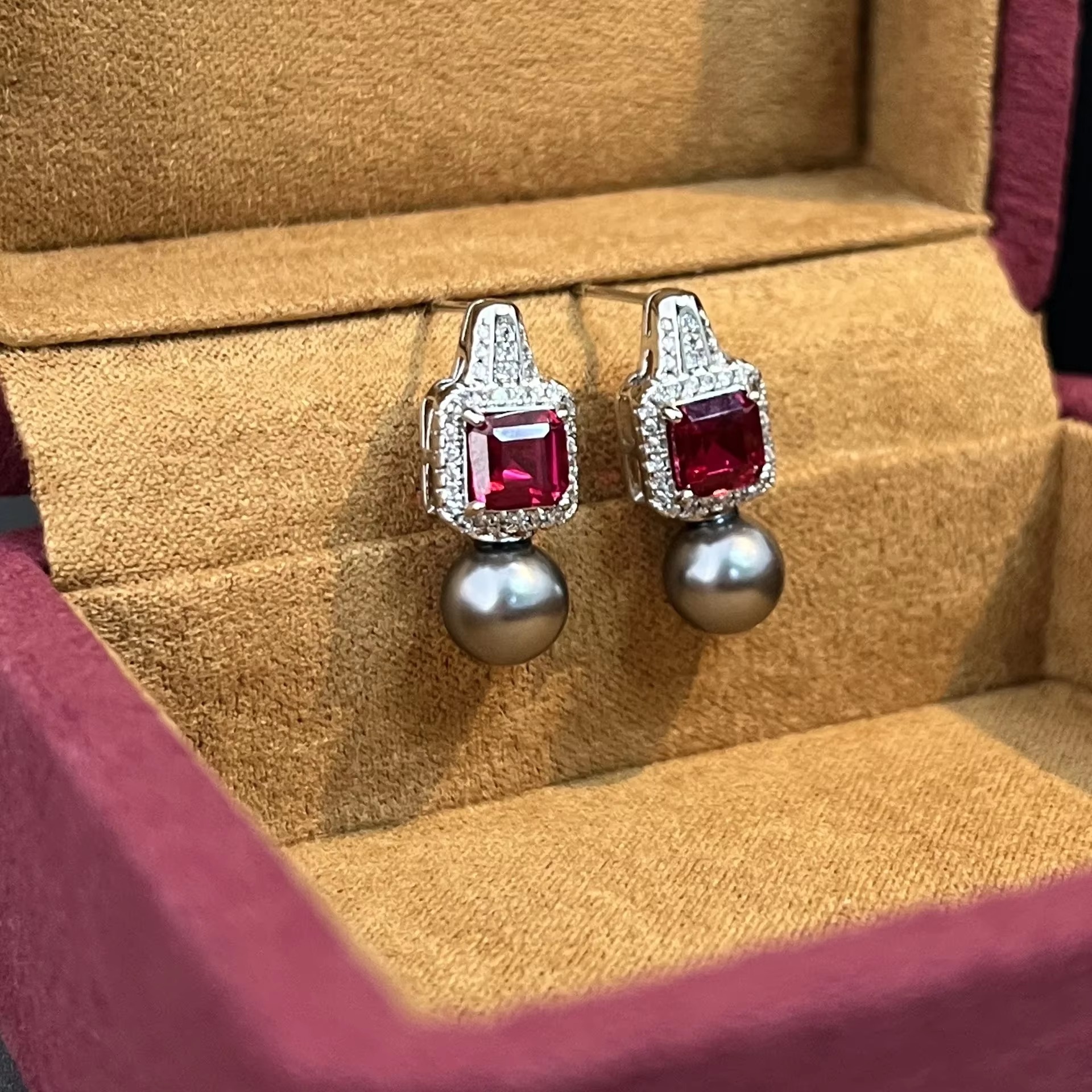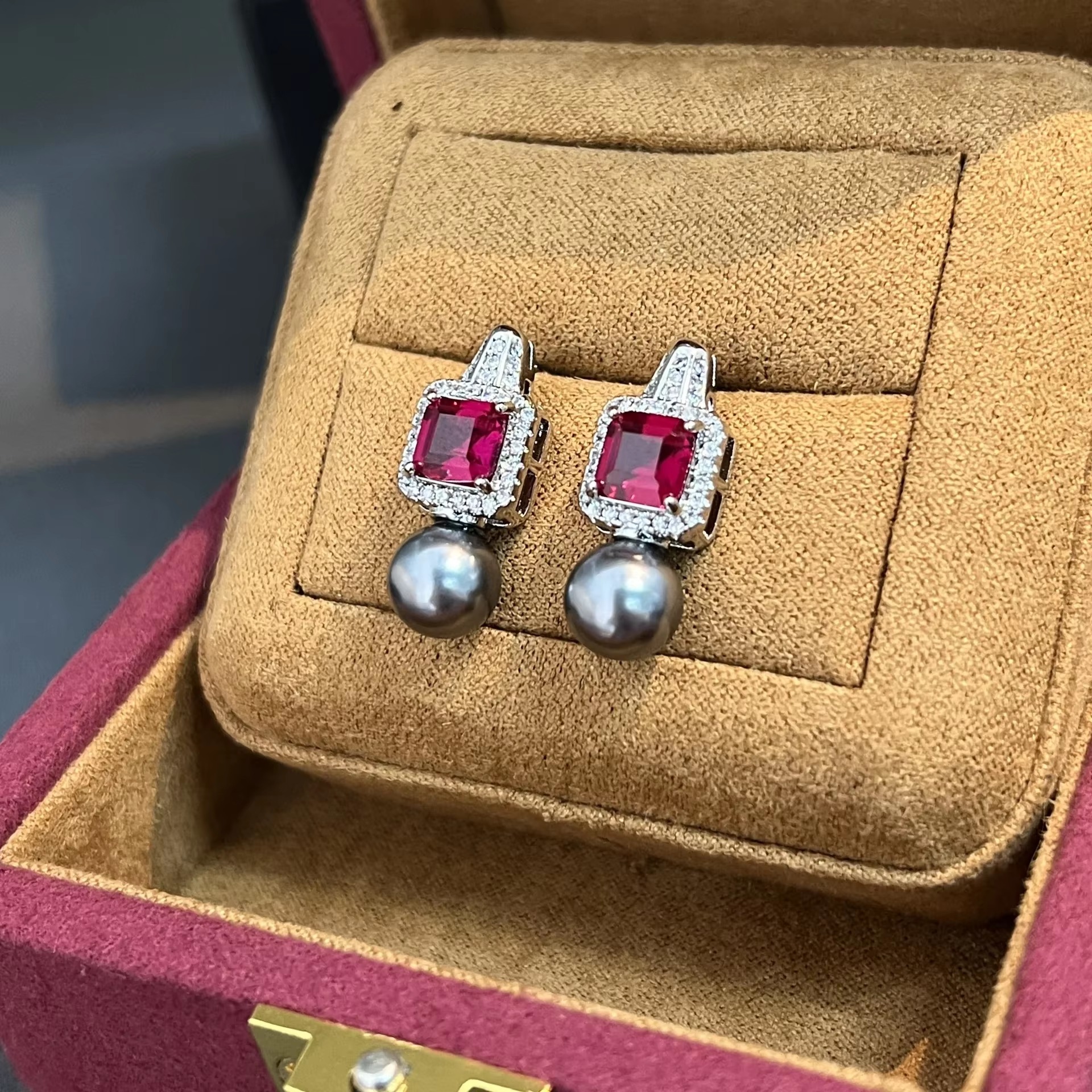 Be the first to review “Classic Square Ruby Retro Pearl Earrings Necklace Wearing Jewelry Sets”