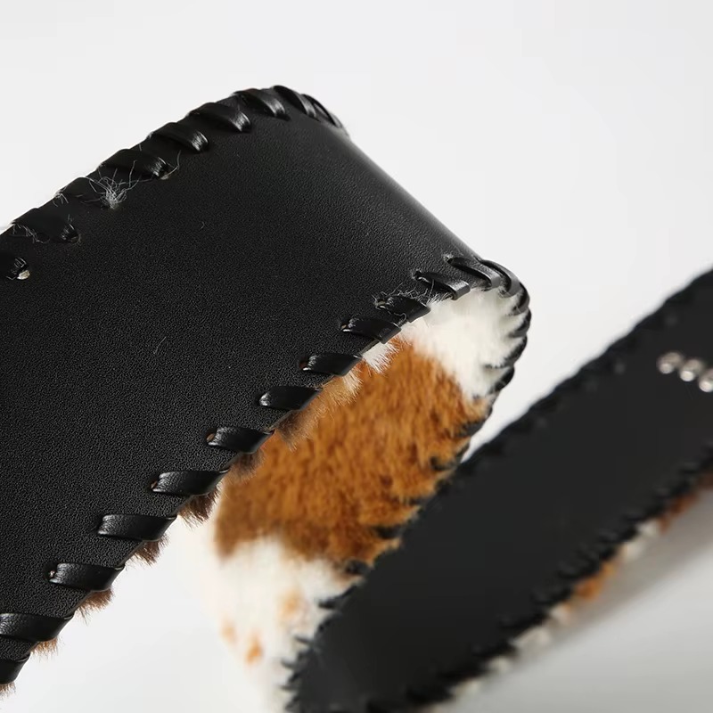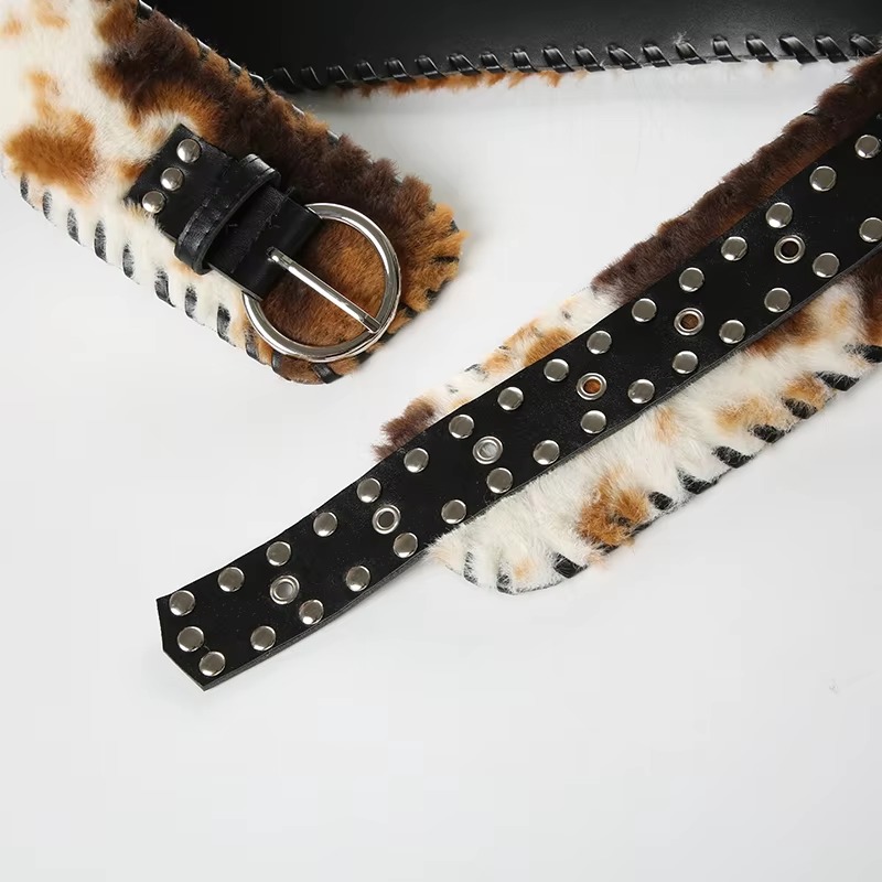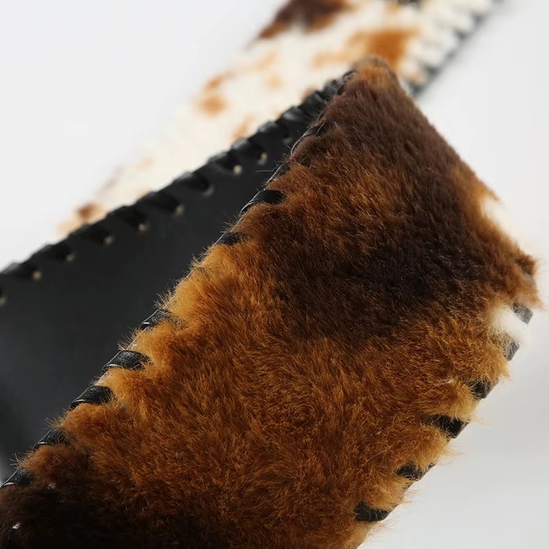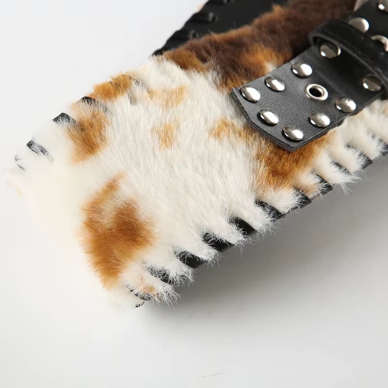 Classical Leather Pu Spliced Faux Fur Cow Pattern Exquisite Retro Accessories Belts