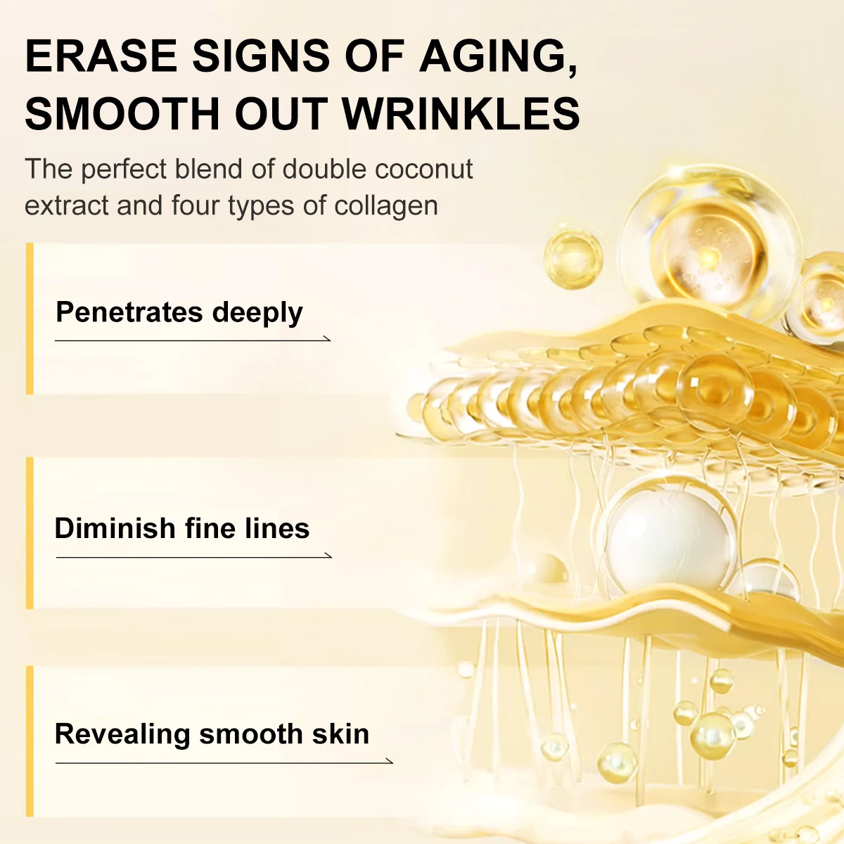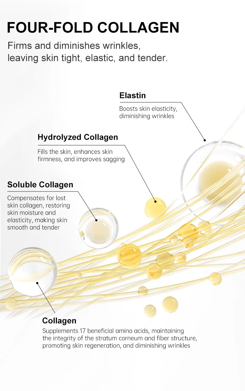 Compensates for lost skin collagen, restoring skin moisture and elasticity, making skin smooth and tender