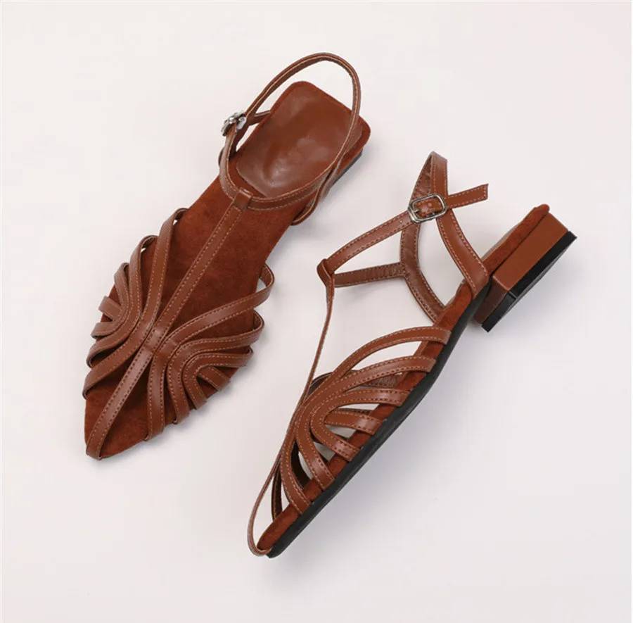 Concise Pointed Toe Cross Tied Hollow Narrow Band Square Low Heel Sandals