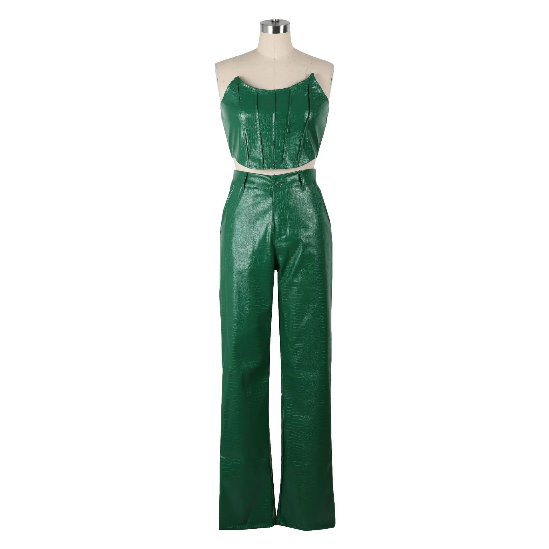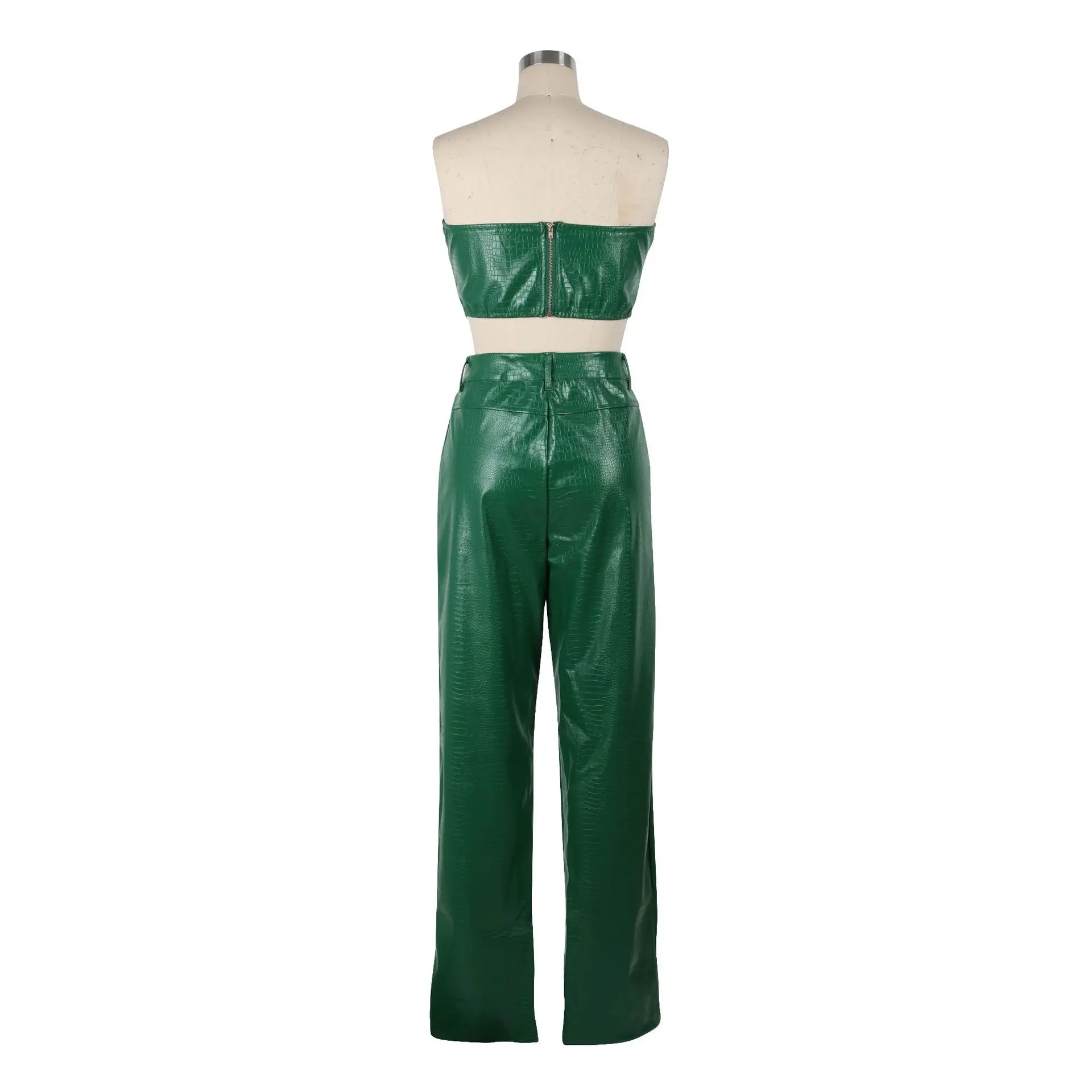 Corset Cut-Out Cargo Sleeveless Jumpsuits PU Leather Matching Set Club wear 2 Piece Outfits