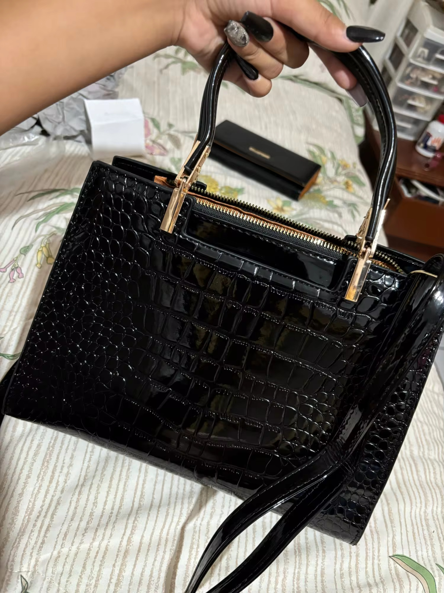 Be the first to review “Crocodile Embossed Pattern Leather Tote Bag”