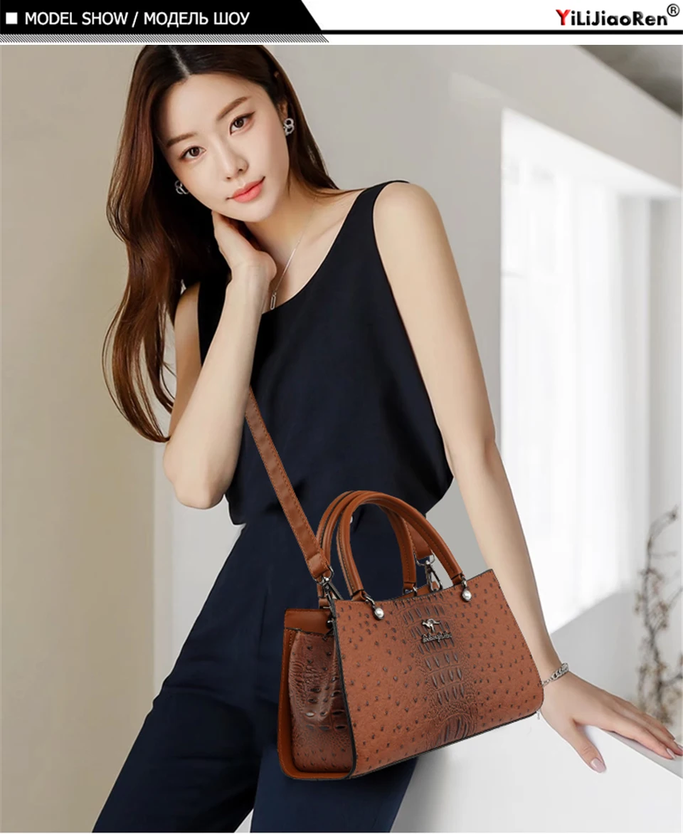 Crocodile Pattern Designer High Quality Leather Cross body Large Capacity Tote Handbag