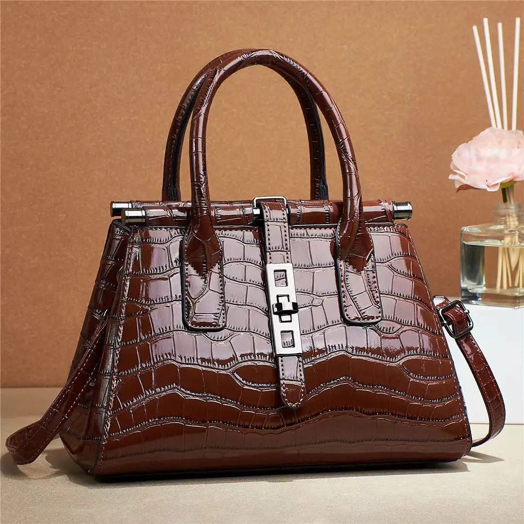 Crocodile Pattern Fashion Bright Leather Designer Tote Bag