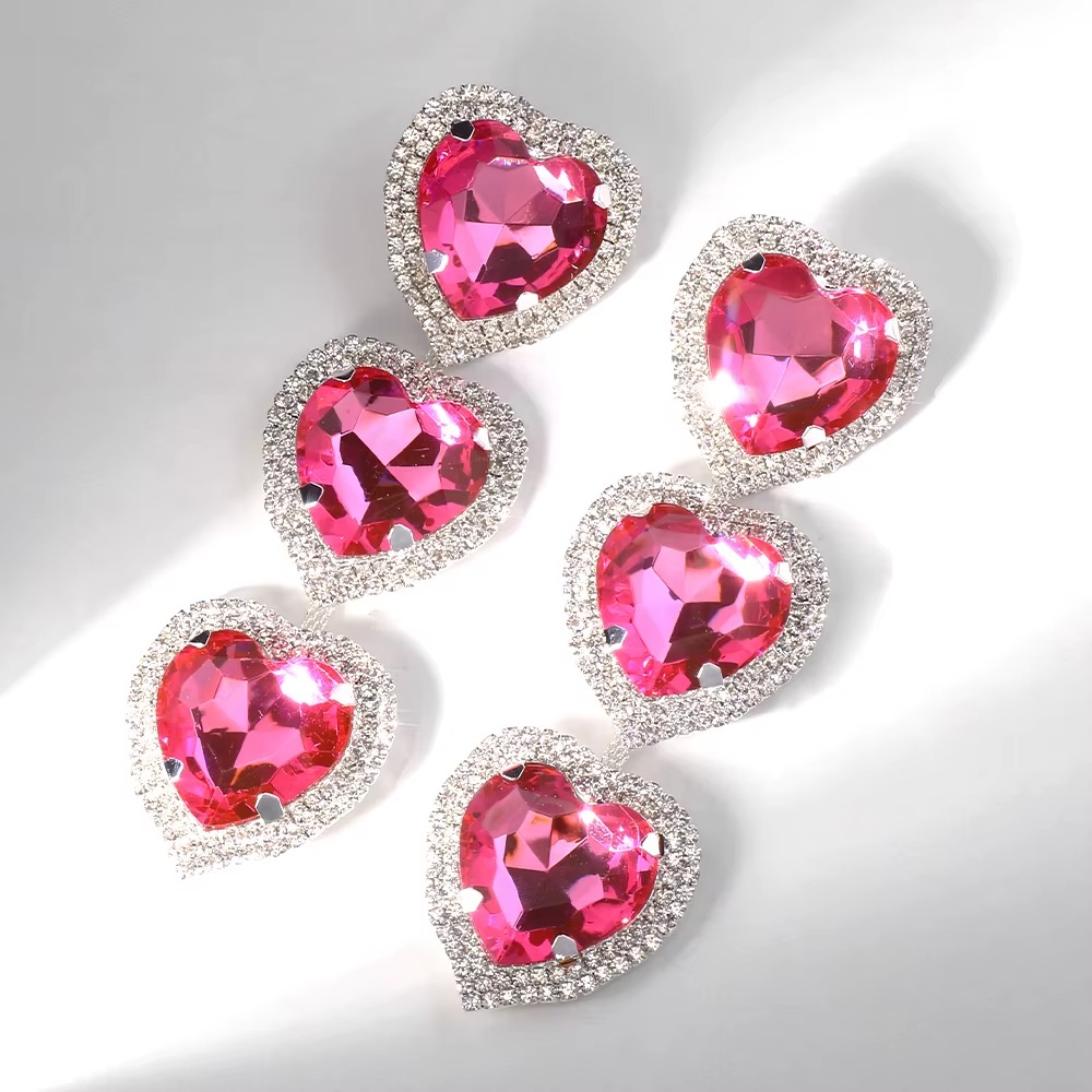 Crystal Heart Statement Love Pendant Rhinestone Dangle Earrings