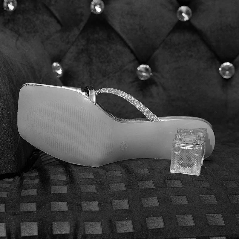 Crystal Transparent Strange Square Toe High Heels Sandals