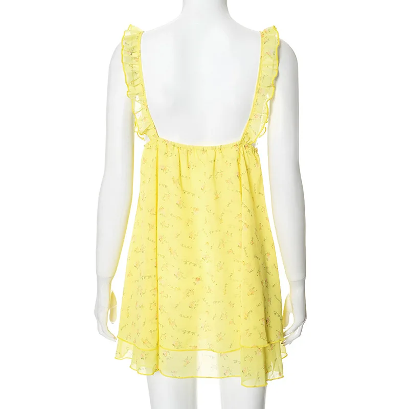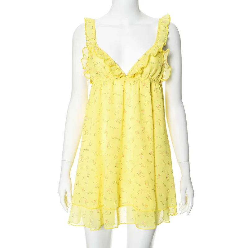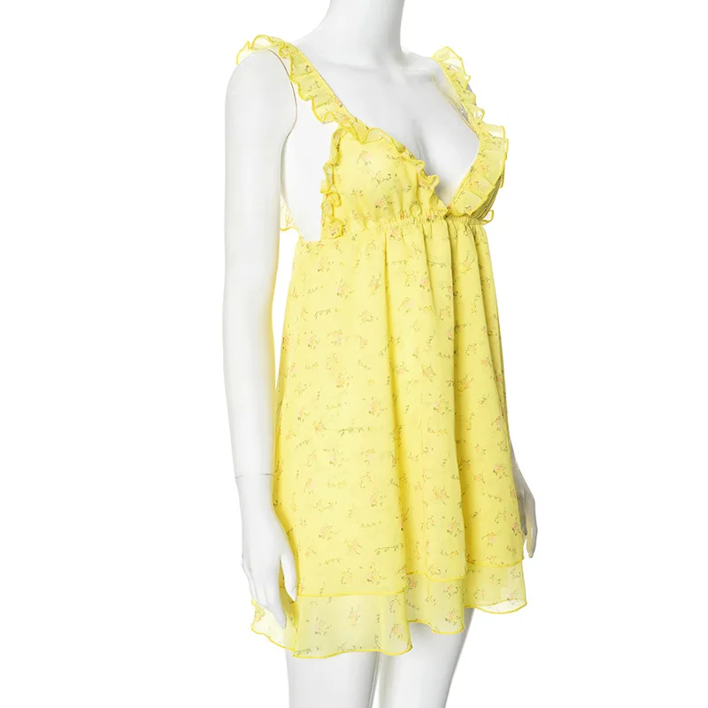 Be the first to review “Deep V Neck Flower Dress Mesh Patchwork Beach Vacation High Waist Short Dress”