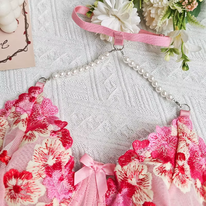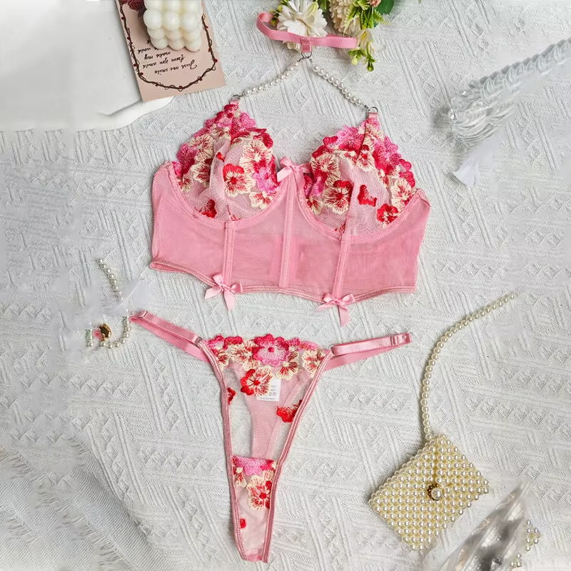 Be the first to review “Delicate Embroidery Pearl Halter Underwear Exotic Bra Set”