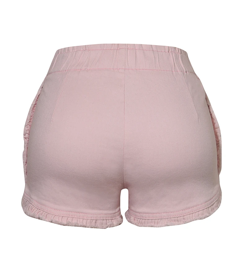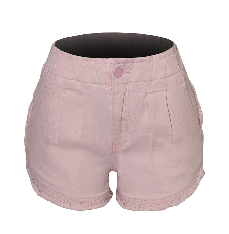 Denim Casual Fashion Vintage Stretch Ruffle Elastic Waist Shorts