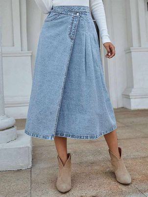 Denim Skirt Blue Mid Length Autumn Bottoms For Women