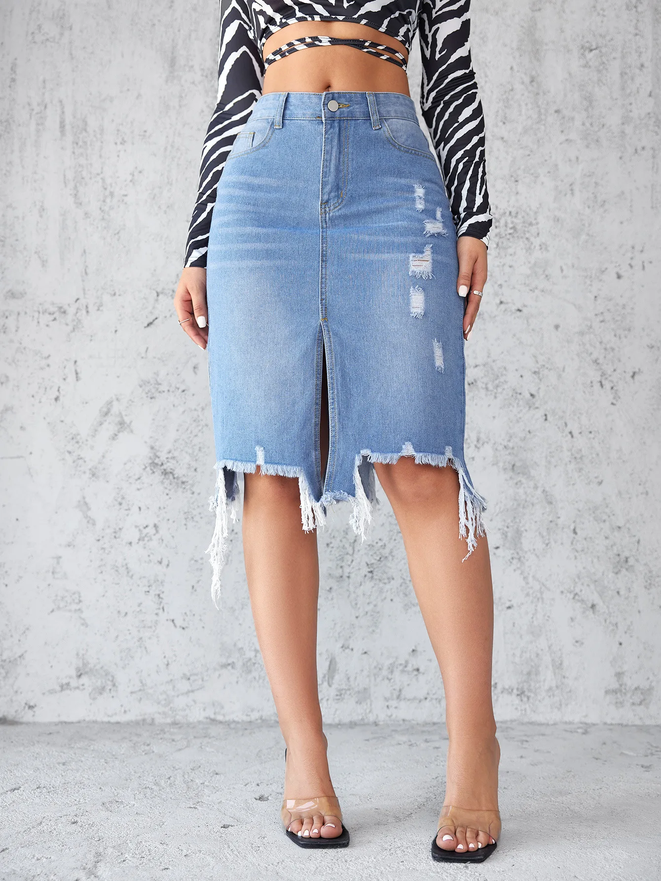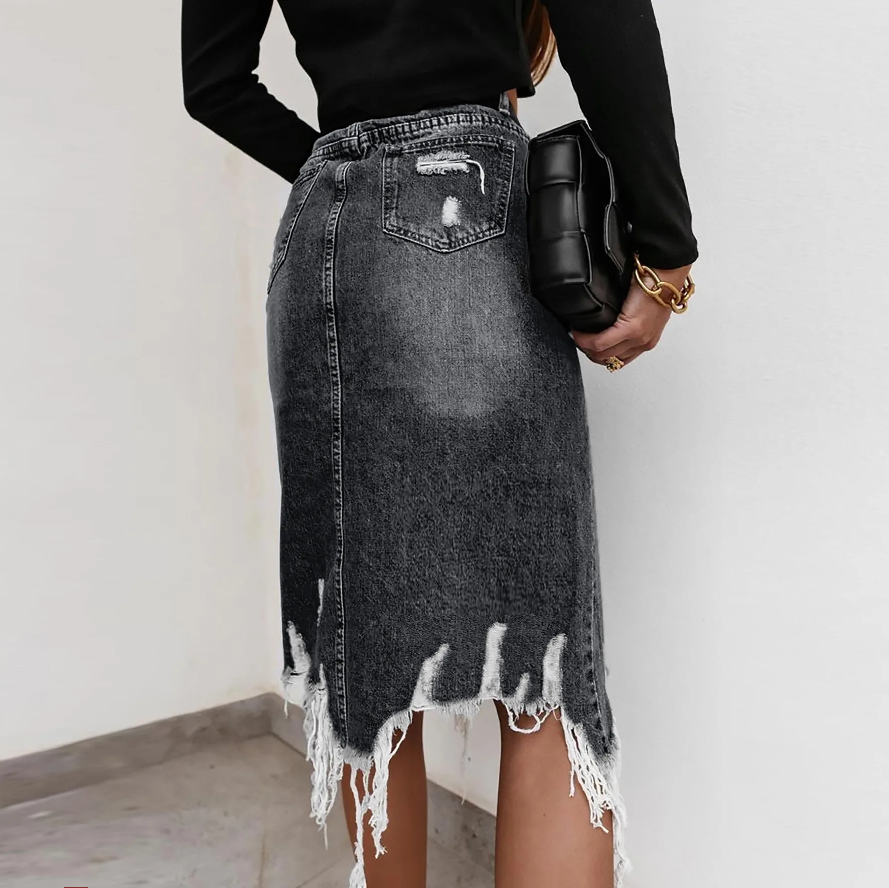Be the first to review “Denim Skirt Streetwear Office Lady Irregular Hole Tassel Vintage Jeans Skirts”