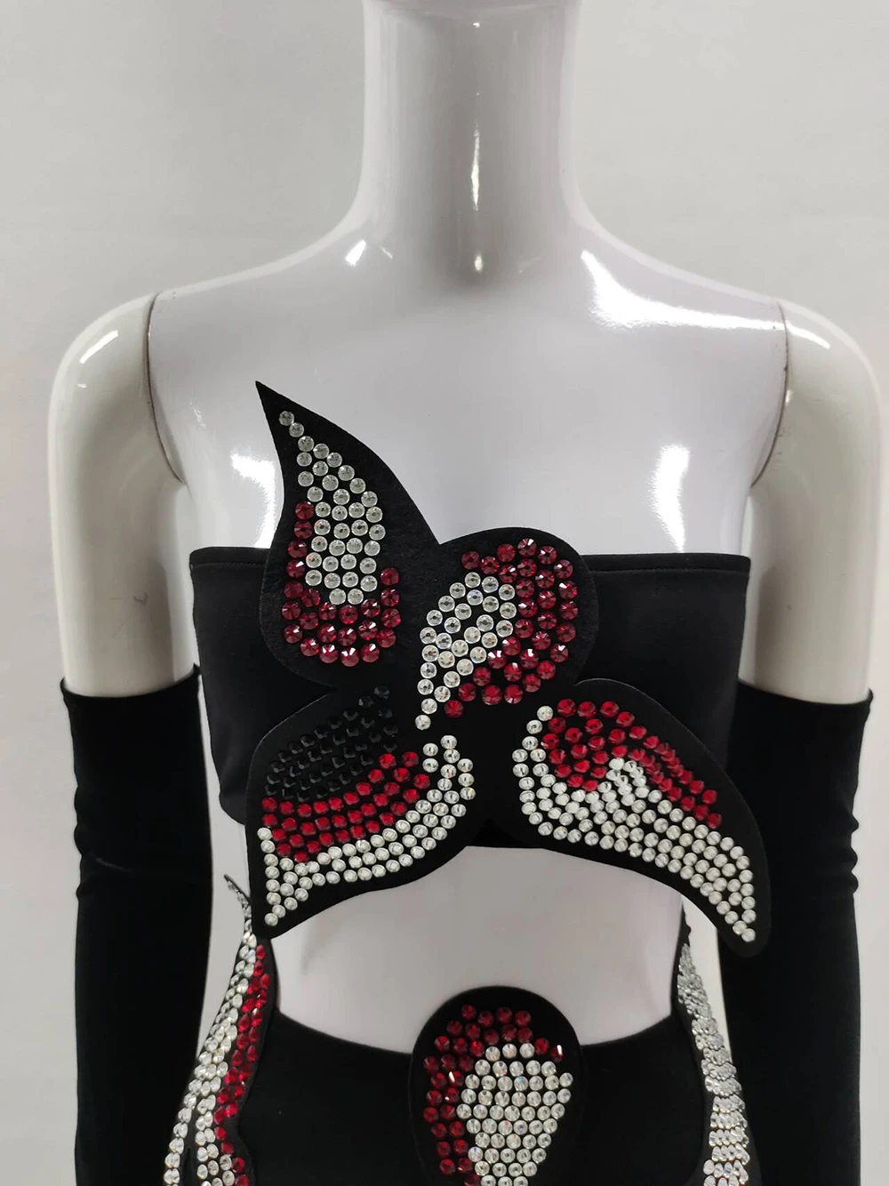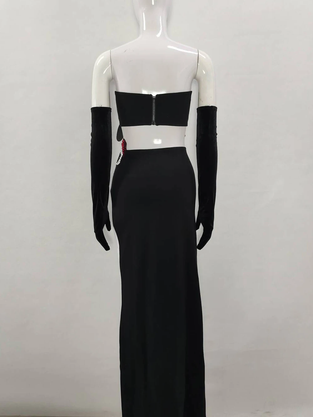 Be the first to review “Diamond Set Tank Top With High Spilt Skirt And Gloves Party Cocktail Set”