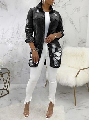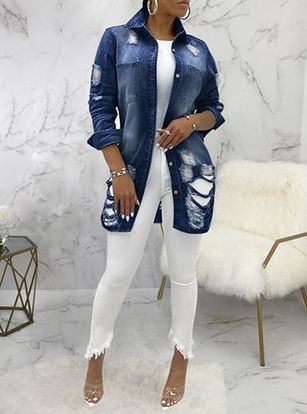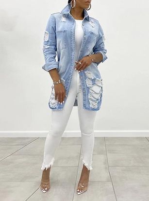 Distressed Cut Long Hem Denim Jacket