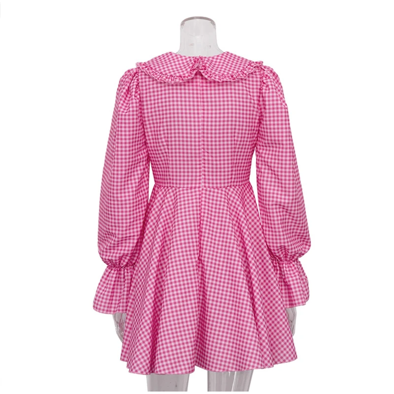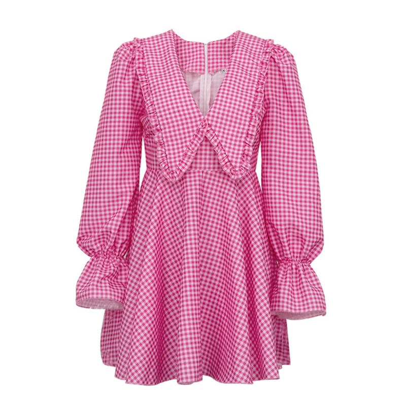 Doll Collar Deep V Neck Long Flare Sleeve A-line Mini Dress Robe