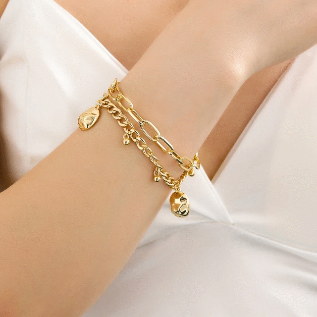 Double Layer Round Irregular Pendant Bracelet