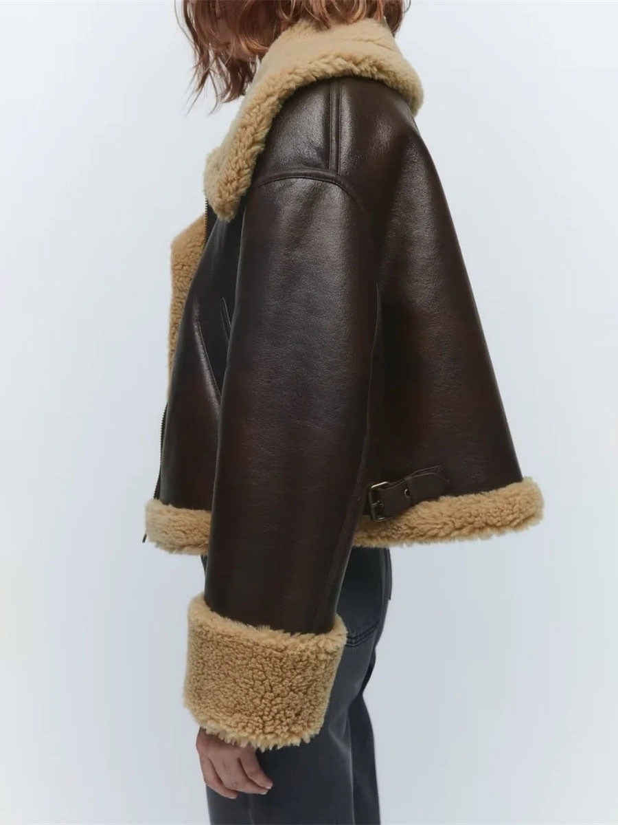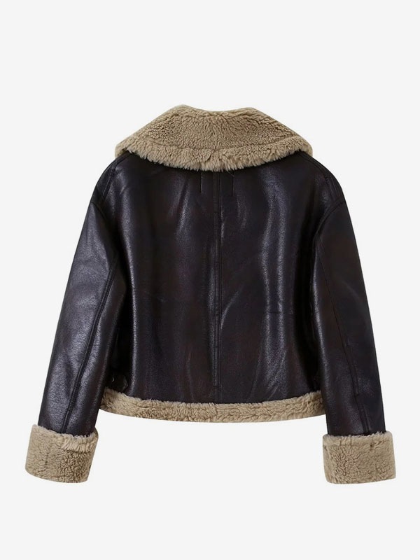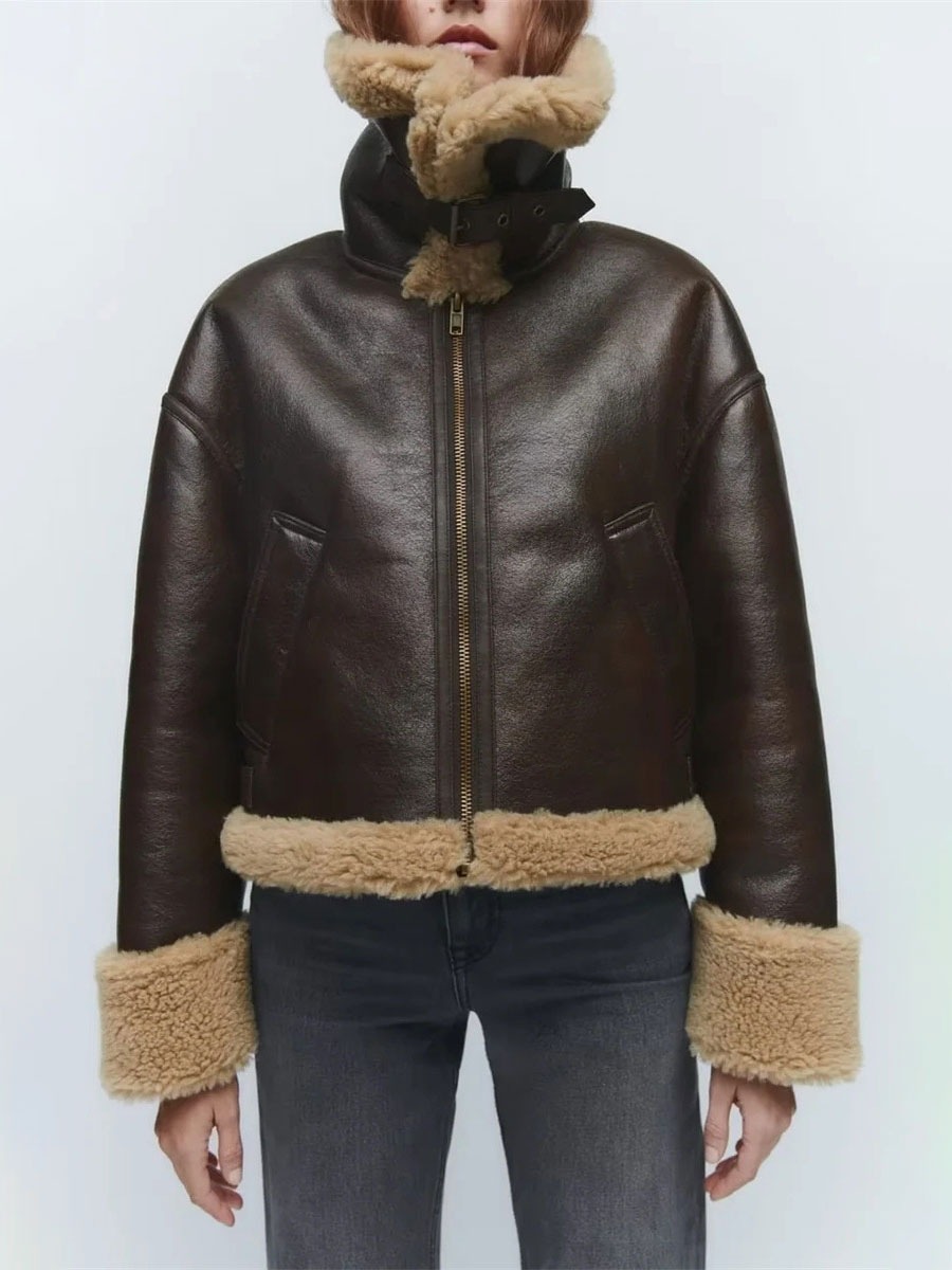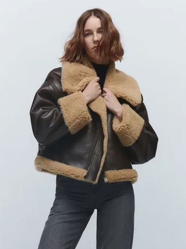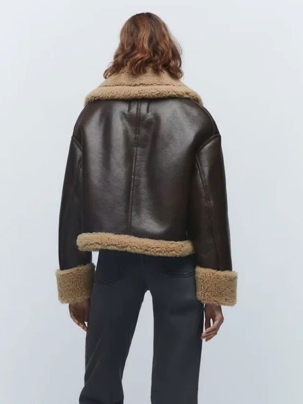 Double Sided Short Jacket Pu Leather Winter 2023 Outerwear For Women