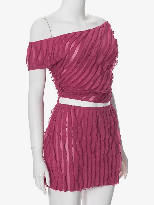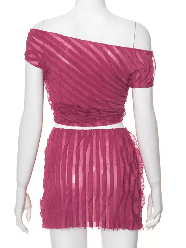 Elastic Waist Polyester Short Sleeves Clubwear Crop Top Sets