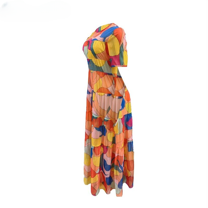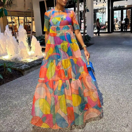 Be the first to review “Elegant All Over Print Round Neck Short Sleeves Tierred Maxi Beach Party Sexy Vacation Dress”