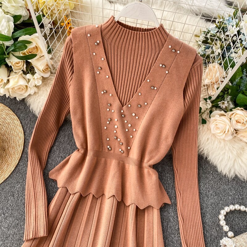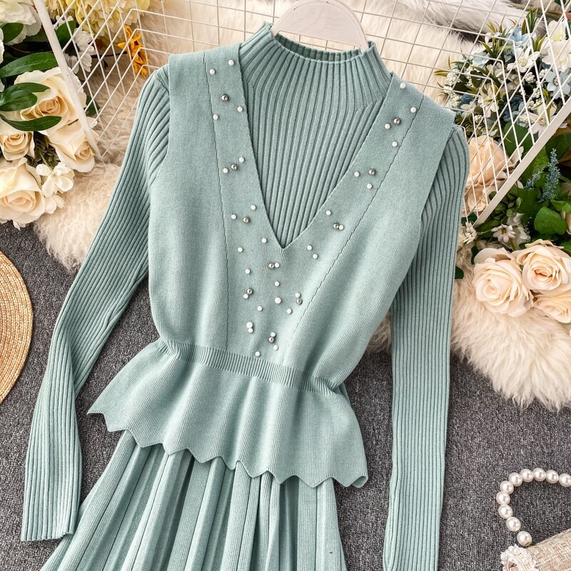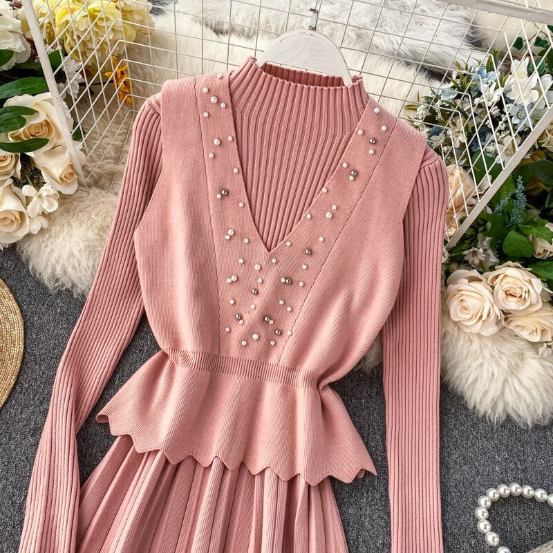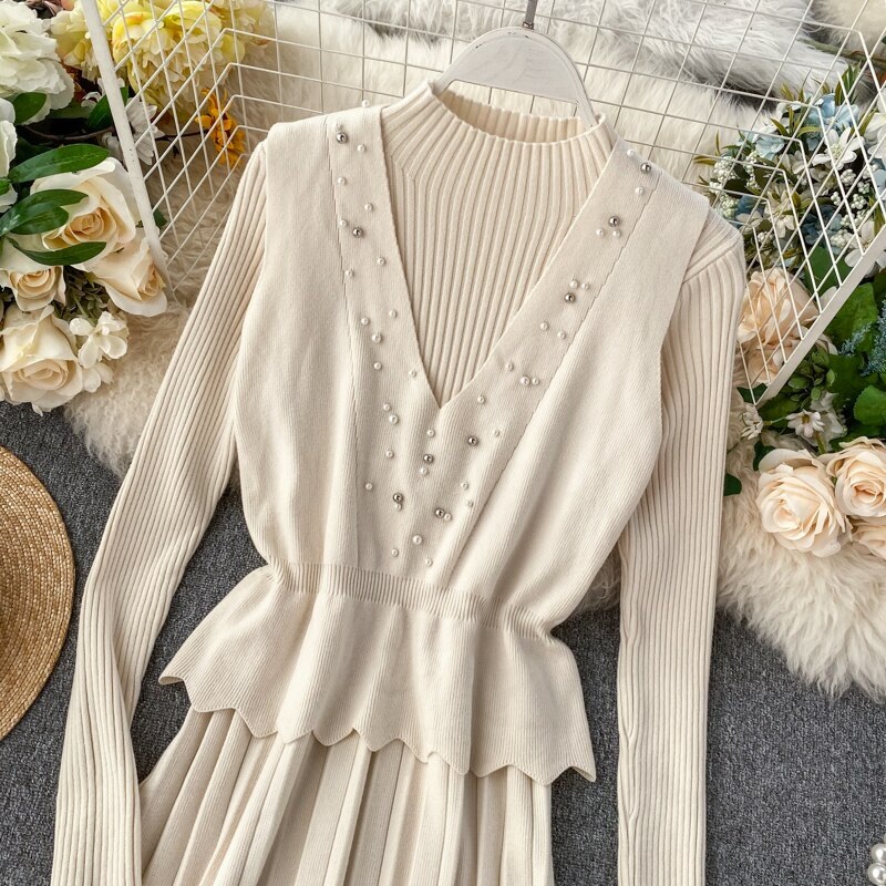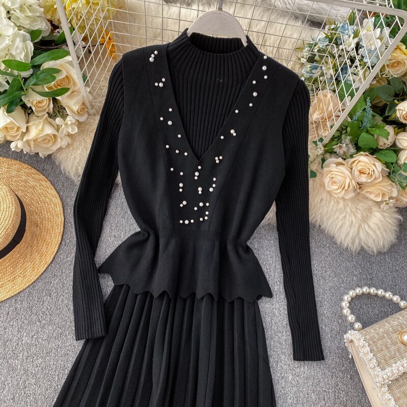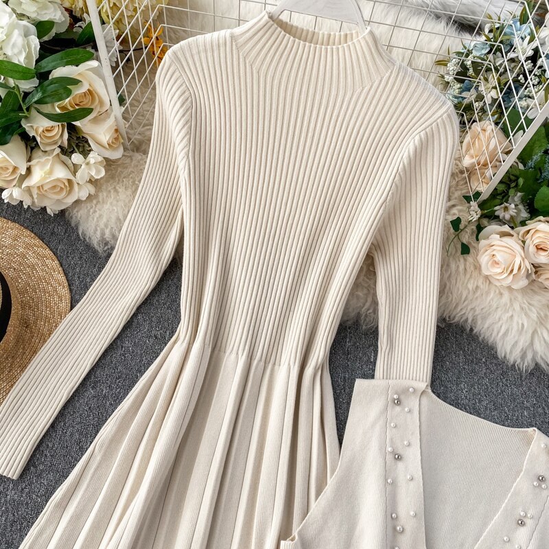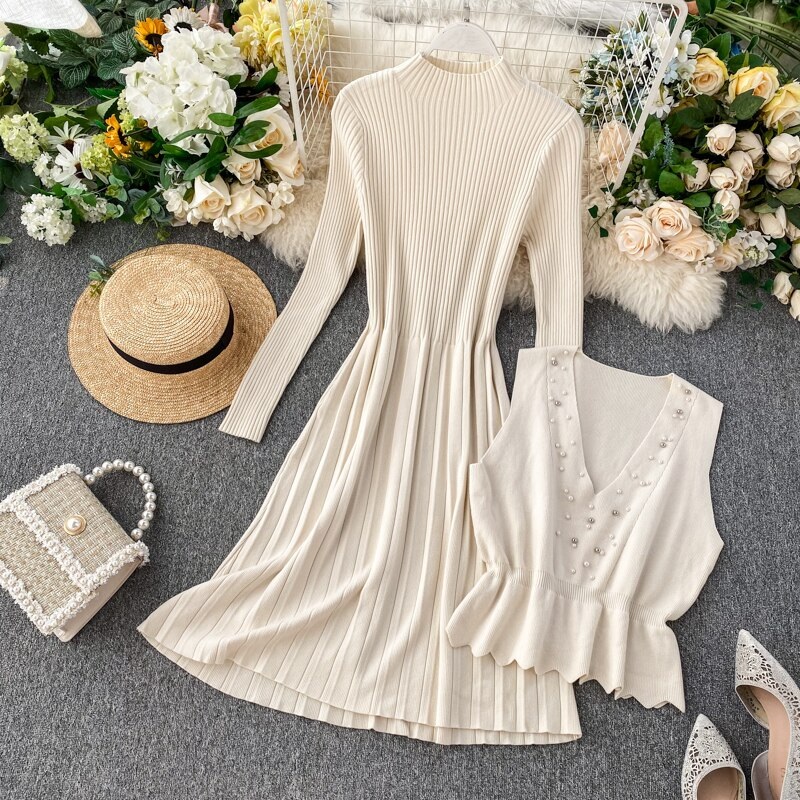 Be the first to review “Elegant Beading Vest And High Collar Bottom Dress”