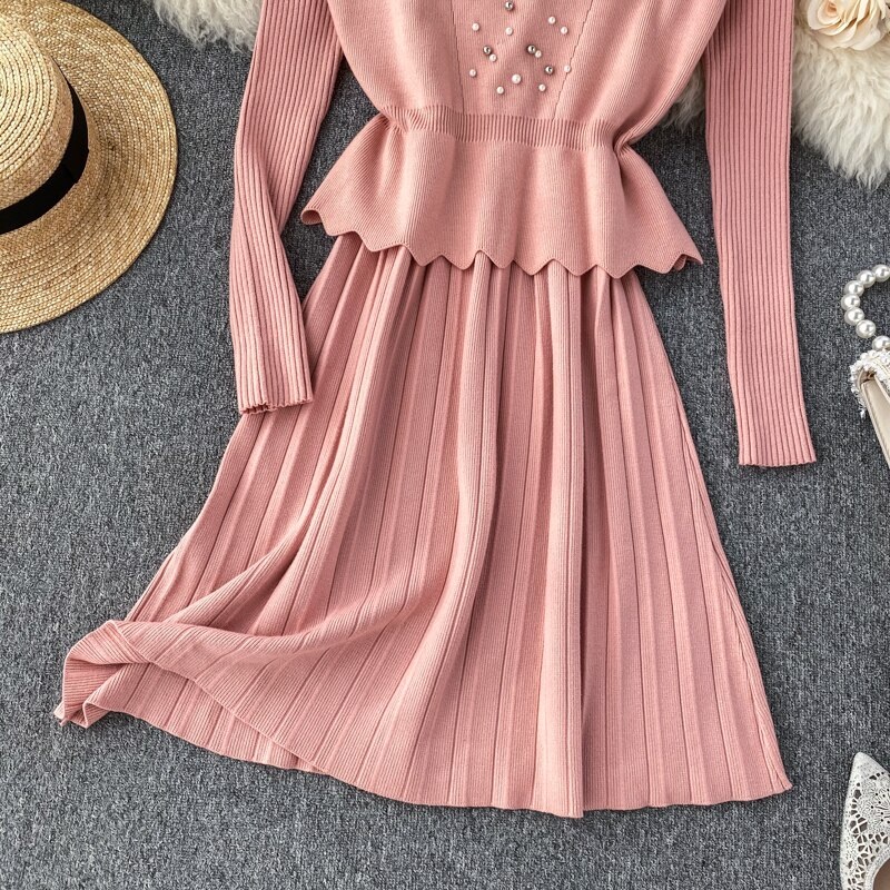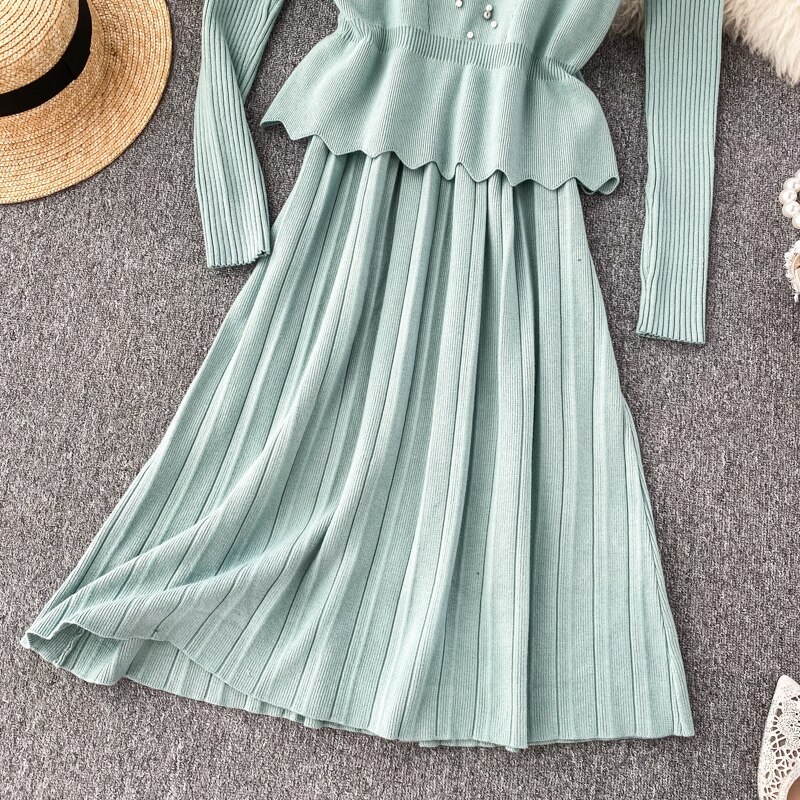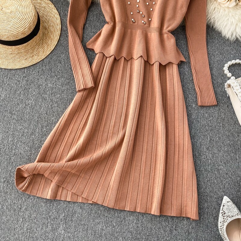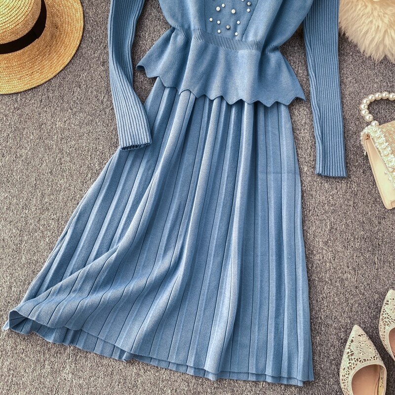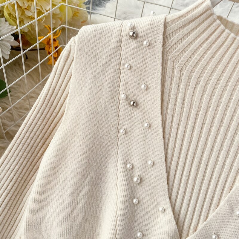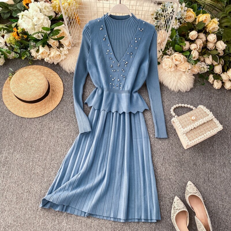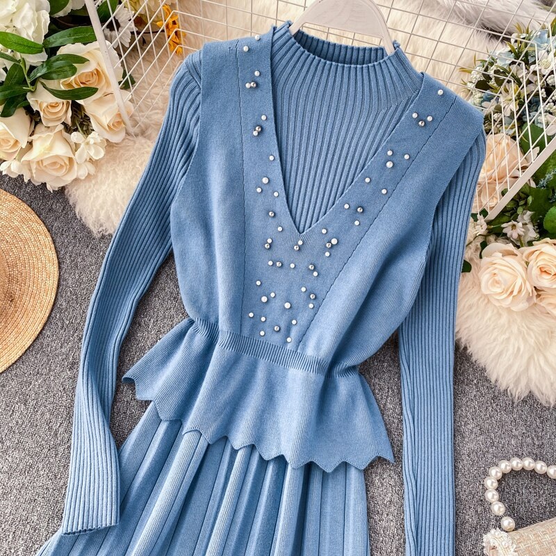 Be the first to review “Elegant Beading Vest And High Collar Bottom Dress”