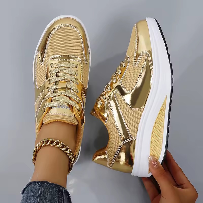 Elegant Breathable Lace-up Wedges Round Toe Platform Sneakers