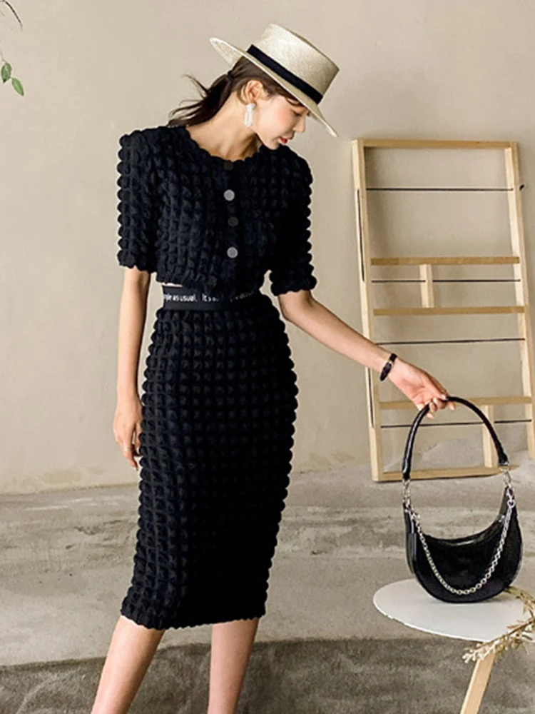 Be the first to review “Elegant Chic O-Neck Short Cropped Tops Shirt Blouse High Waist Midi Skirt 2 Piece Outfits”