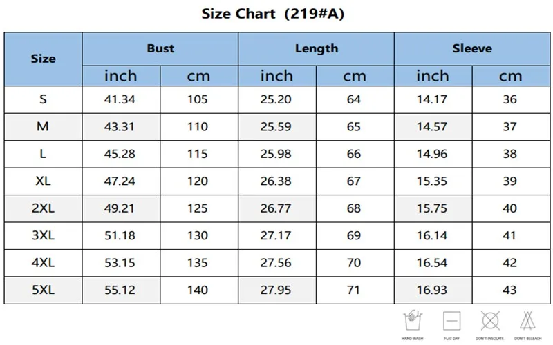 S, M, L, XL, 2XL, 3XL, 4XL, 5XL