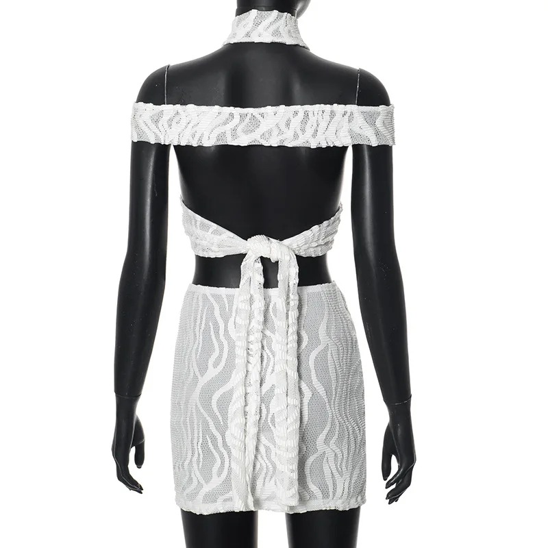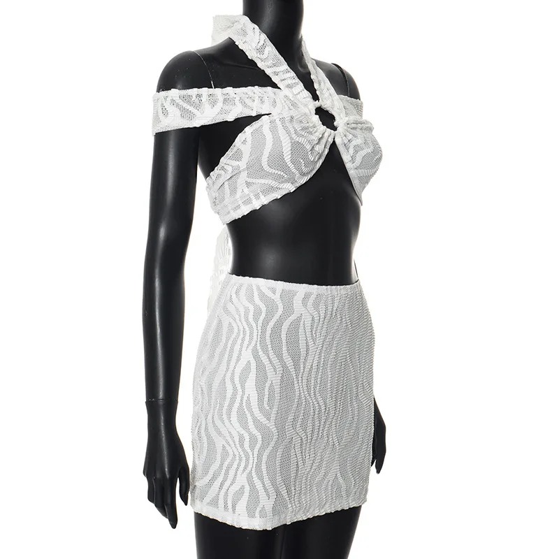 Be the first to review “Elegant Hollow Out Skirt Suit Irregular Tops Club Fashion Skirt Two Piece Set”
