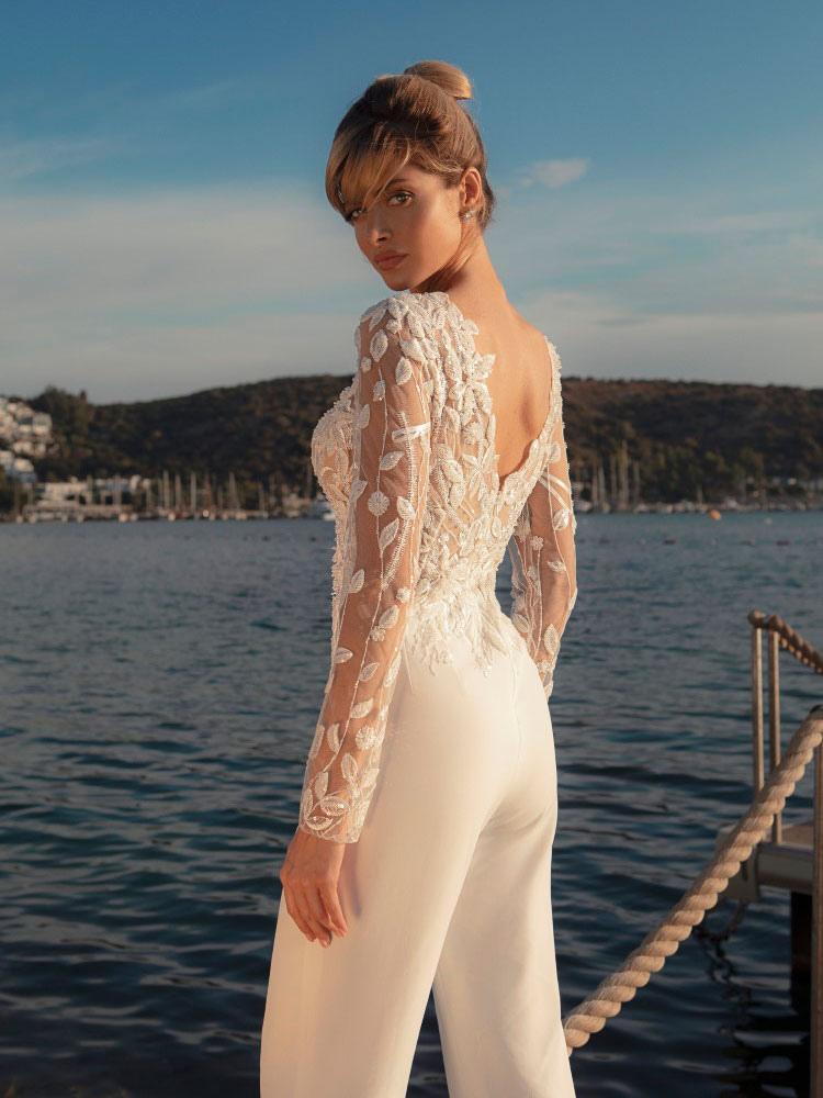 Be the first to review “Elegant Lace Jewel Neck Long Sleeves Ankle Length Bridal Jumpsuit”
