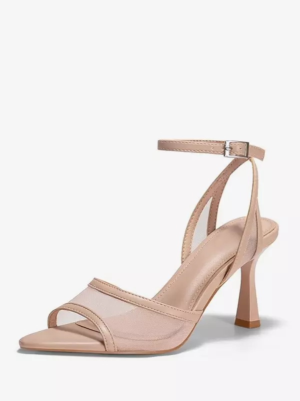 Elegant Pointed Toe Mesh Open Toe Ankle Strap High Heel Sandals