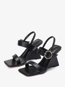 Elegant Polyurethane Slip-On PU Leather Wedge High Heels Sandals
