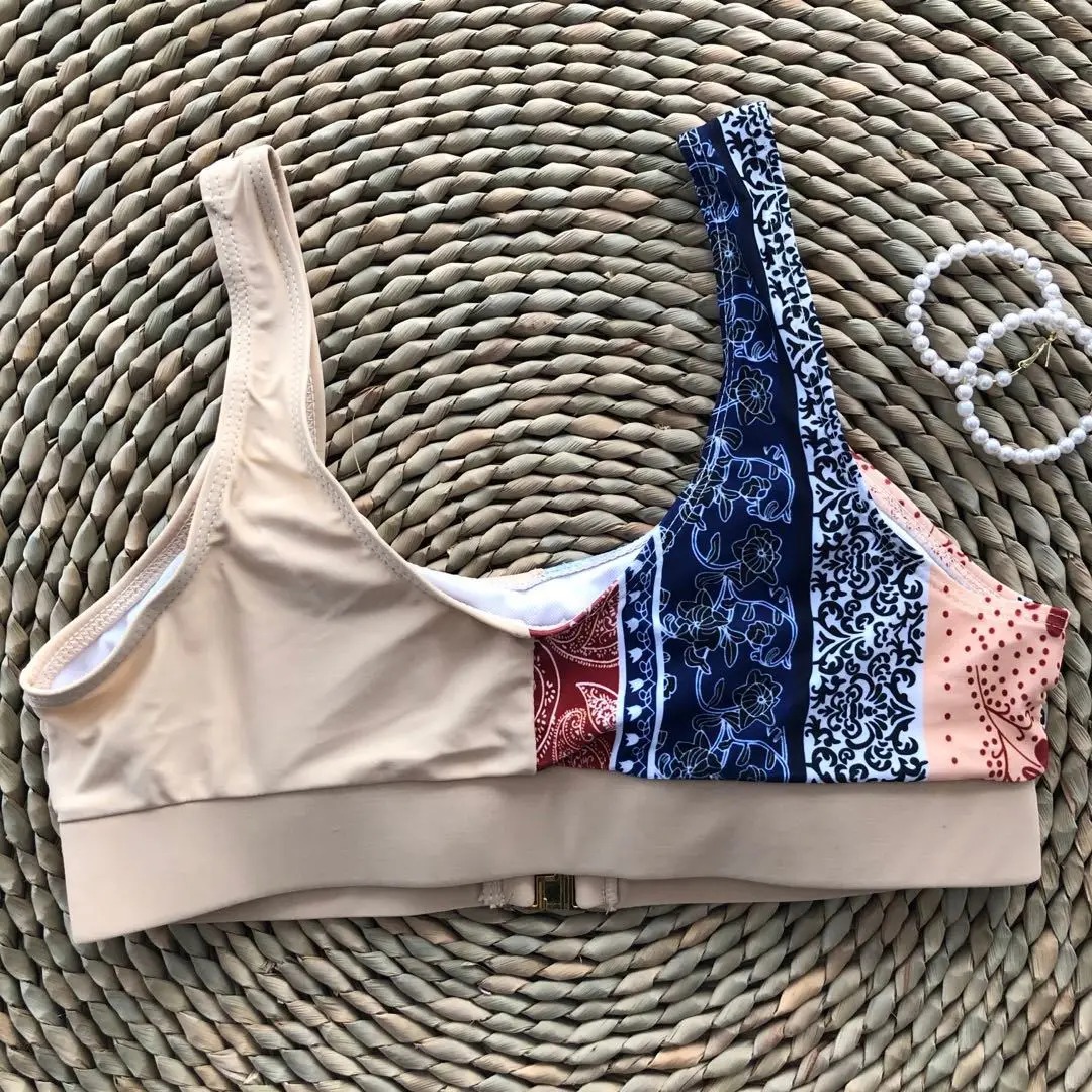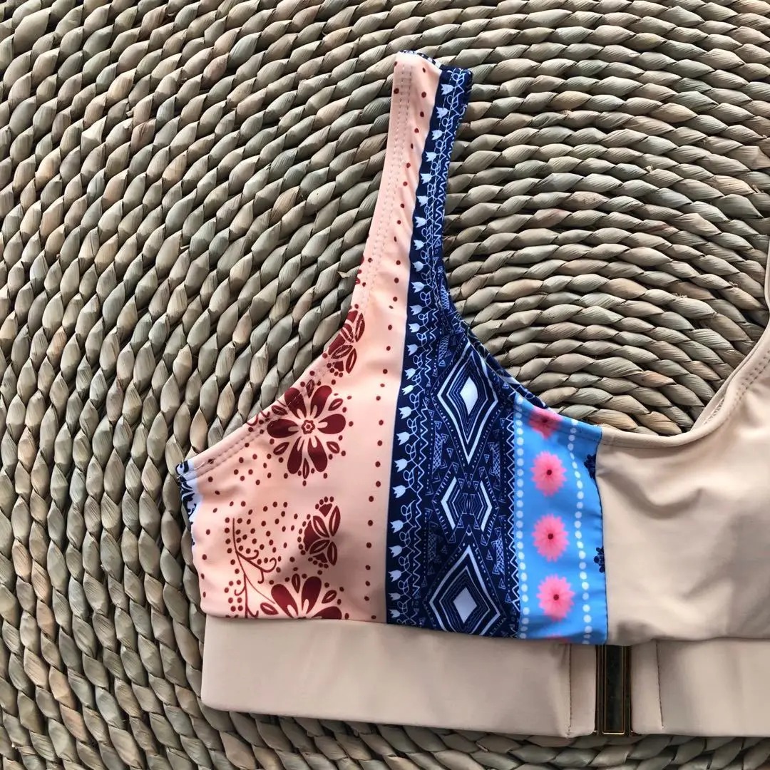 Be the first to review “Elegant Push Up Patchwork Print Sports Bra Bathing Suit Metal Buckle Crop Tops”