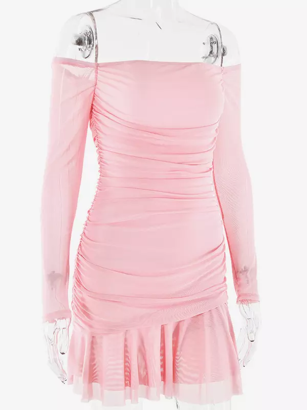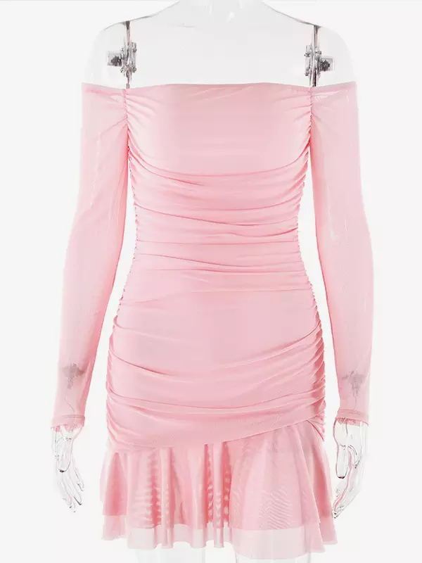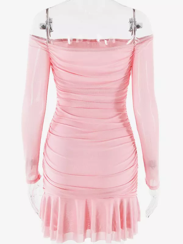 Elegant Ruffle Hem Off-Shoulder Ruched Bodycon Mini Dress