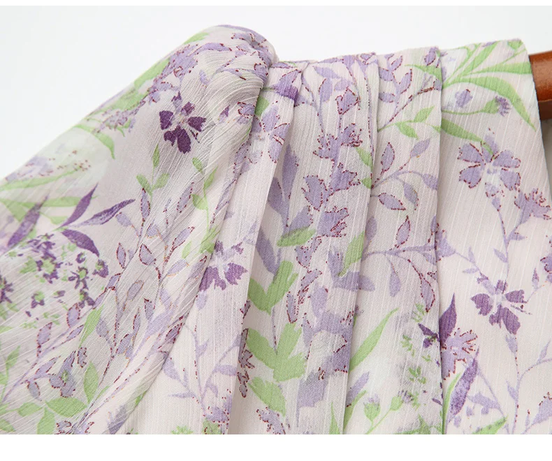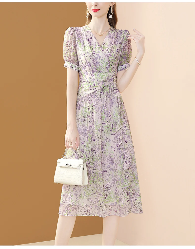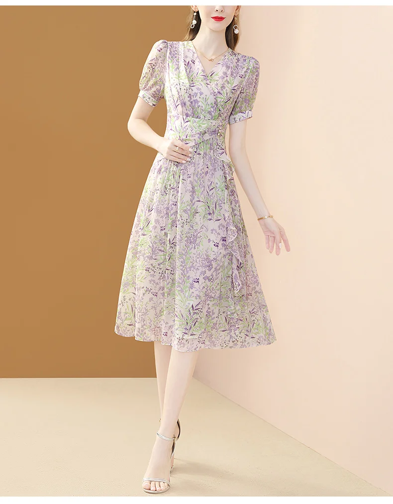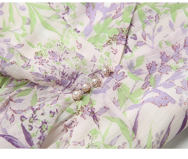 Be the first to review “Elegant Ruffles Irregular V-neck Chic Floral Printing A-line Slim Fairy Chiffon Dress”